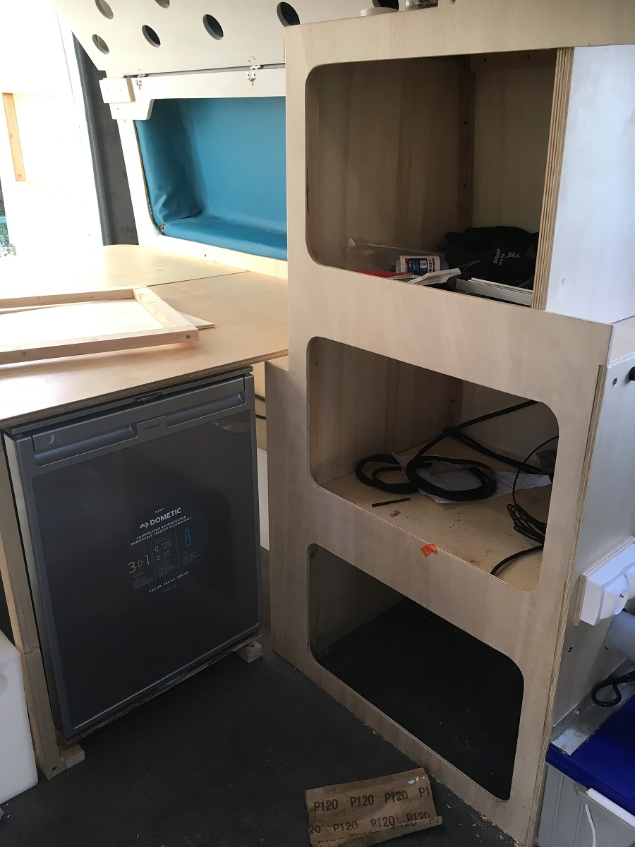 Au niveau du plan d’aménagement on aura 1 grand lit 140*200 en travers et 2 lit en L au-dessus de la tête. On voulait vraiment du fixe et ne pas avoir à manipuler quoique que ce soit pour le mode dodo donc adieu la banquette convertible.