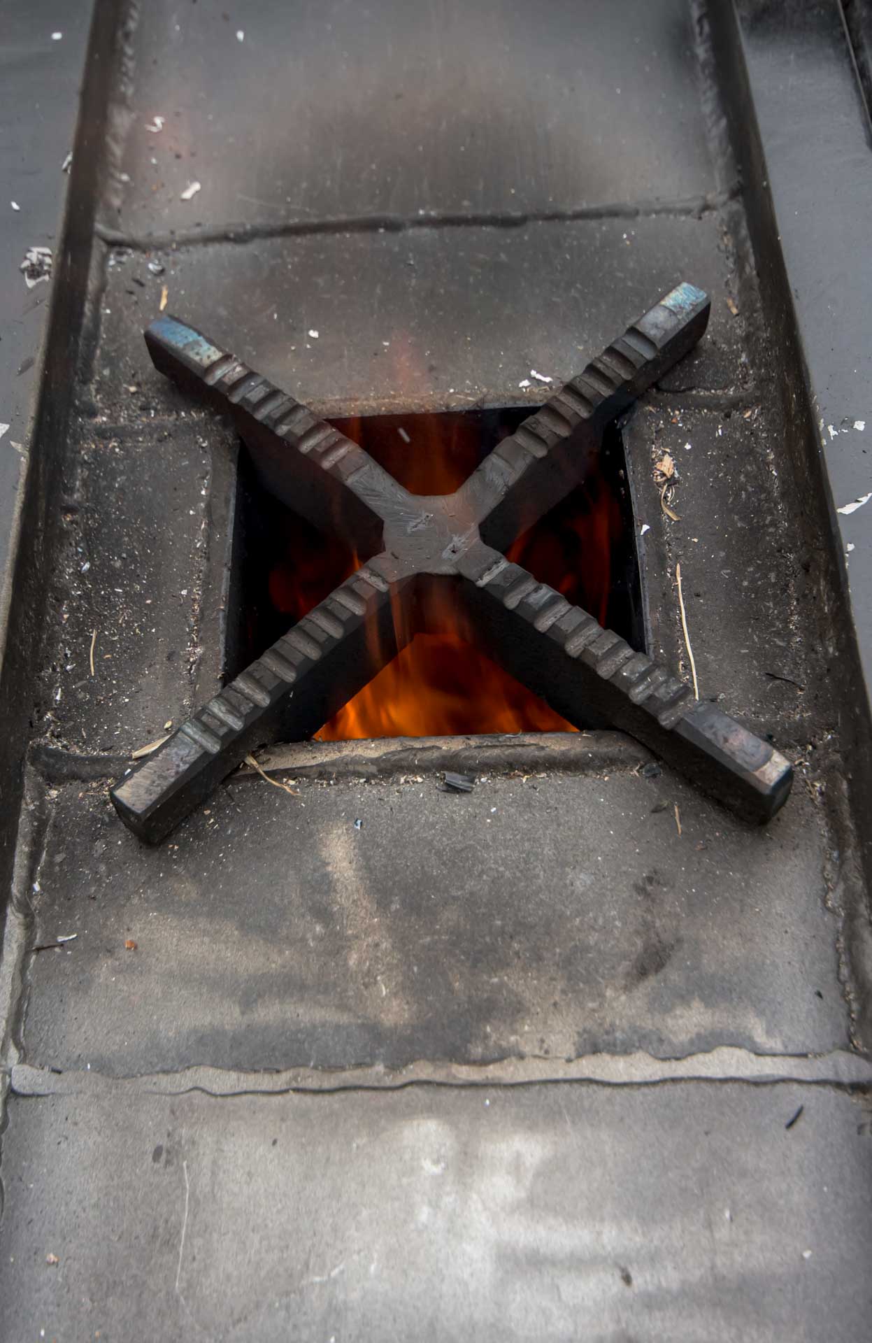 L appel d air se fait par les ouïe du côté mais les cendres ne peuvent pas en sortir.