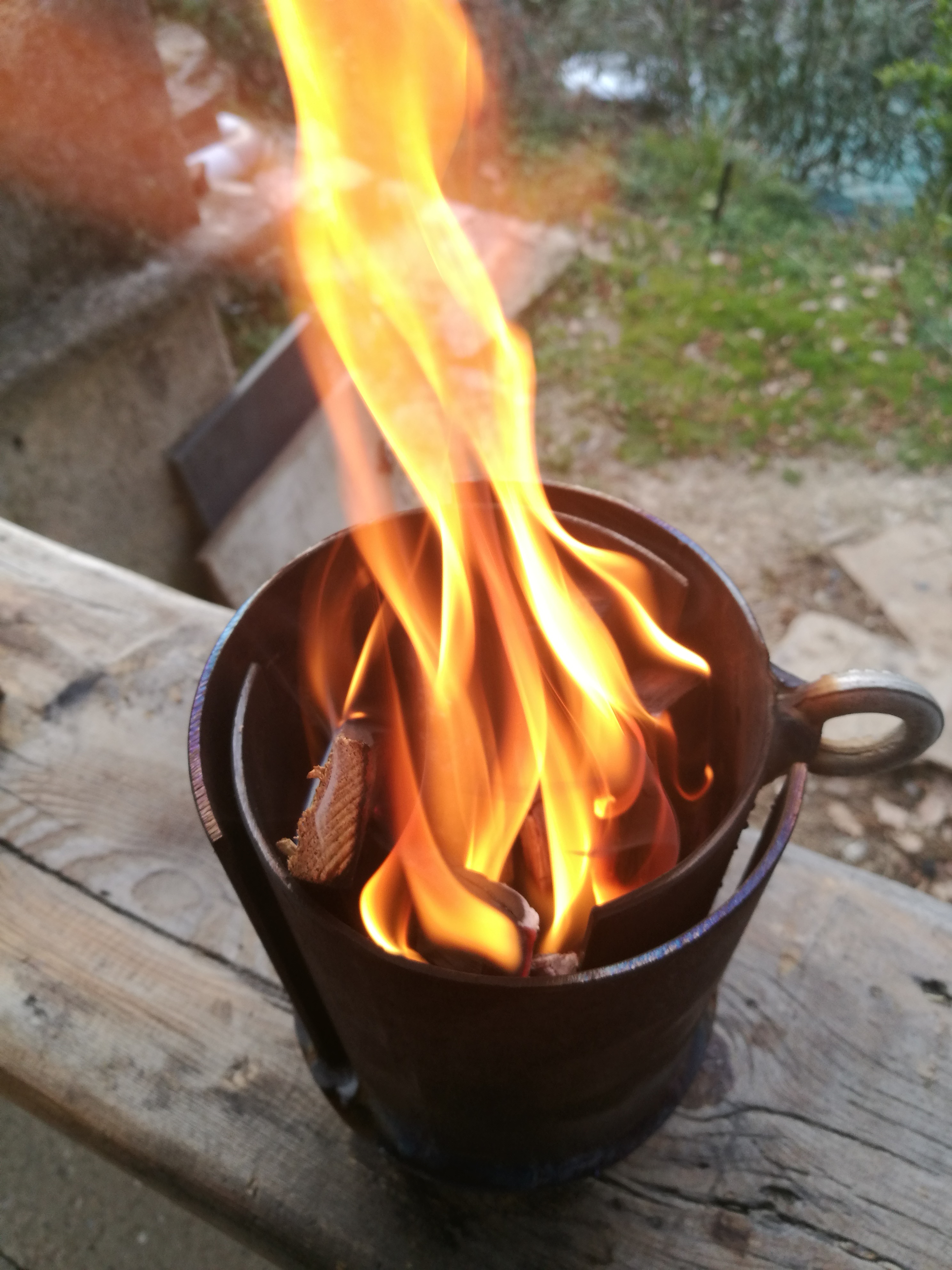 Pour ceux que le principe du rocket stove intéresse voici un autre modèle,plus petit mais tout aussi efficace.
