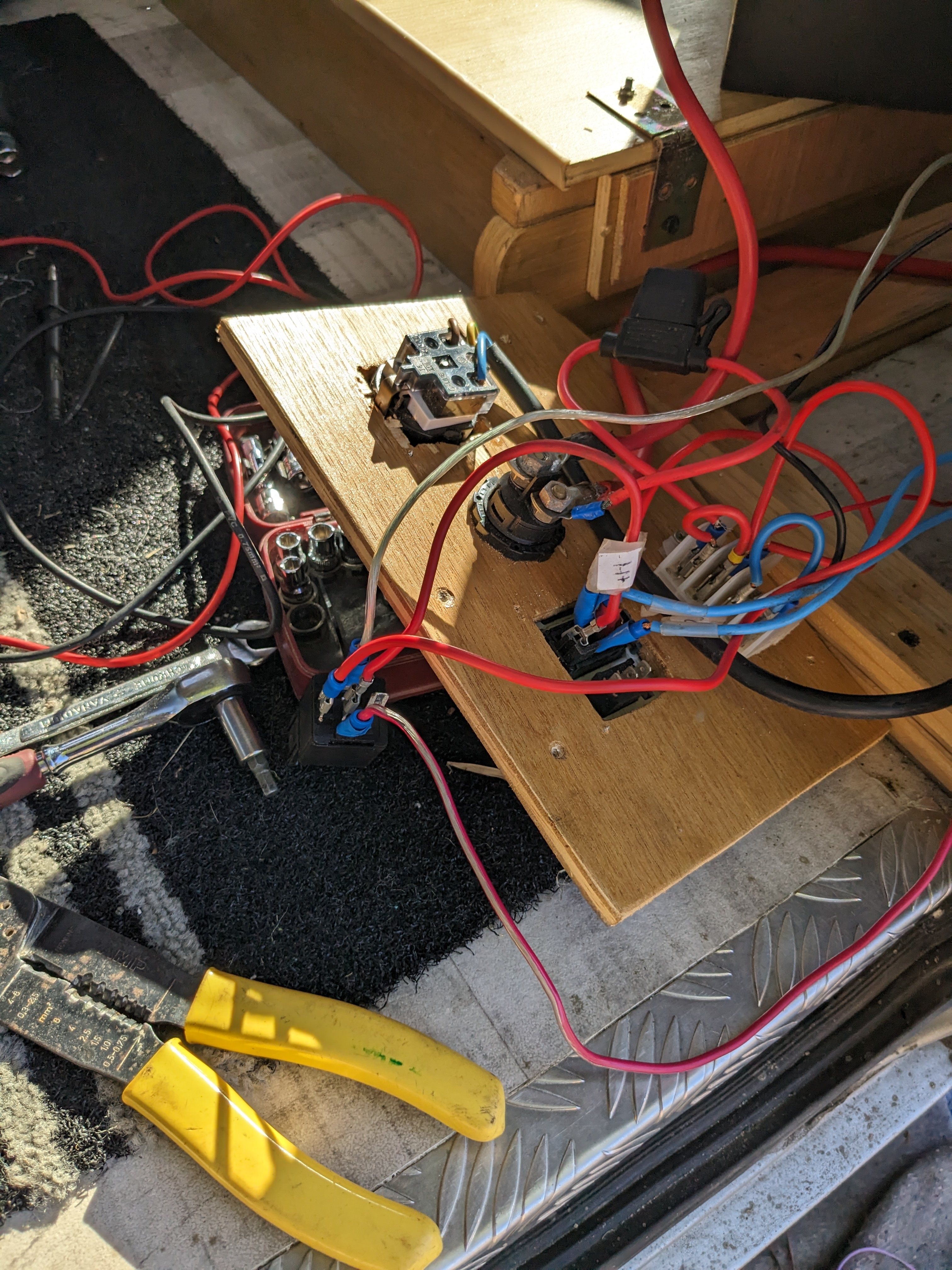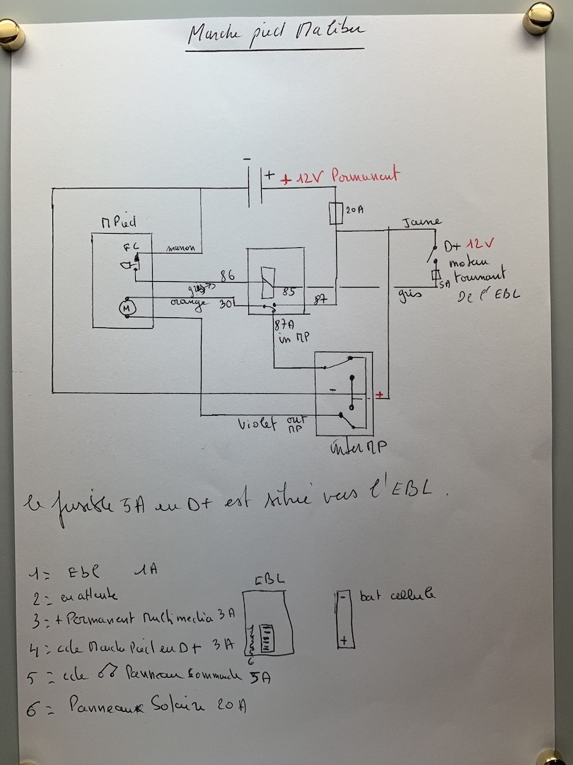 Après remontage et branchement comme il faut du fil gris et marron ! A nouveau fonctionnel. Faire attention à quel négatif on branche le fil marron (mon négatif auxiliaire n'est pas couplé au négatif véhicule et le retour du D+ doit se faire sur le véhicule bien sur)