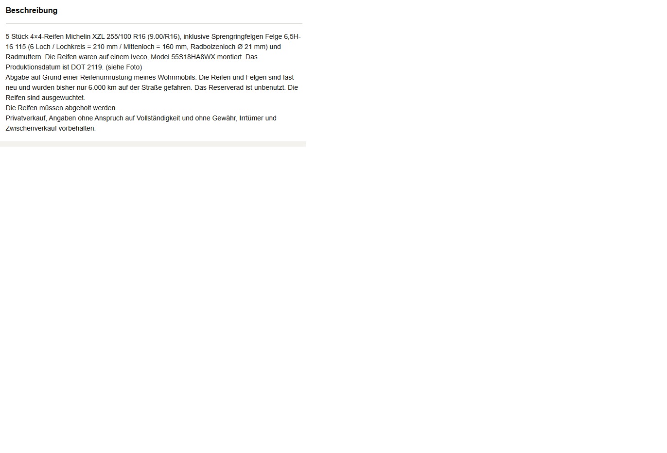 Salut Hippo, je suis tomber sur une annonce intéressante en allemagne, 5 jantes et des XLZ quasi neuf en 255/100 R16. Seulement les jantes sont d'un véhicules plus récents (55S18HA8WX) et je ne suis pas sur que ces jantes ailles sur mon iveco de 1999. Peux-tu me dire ce que tu en penses?