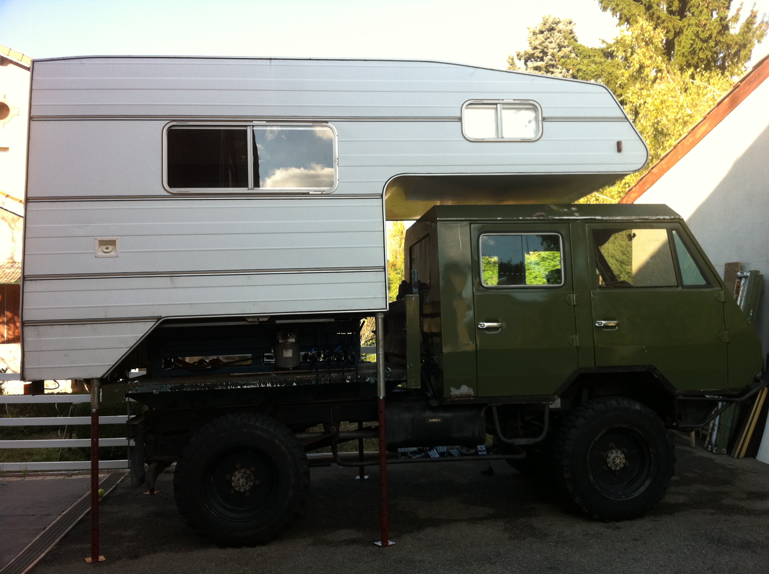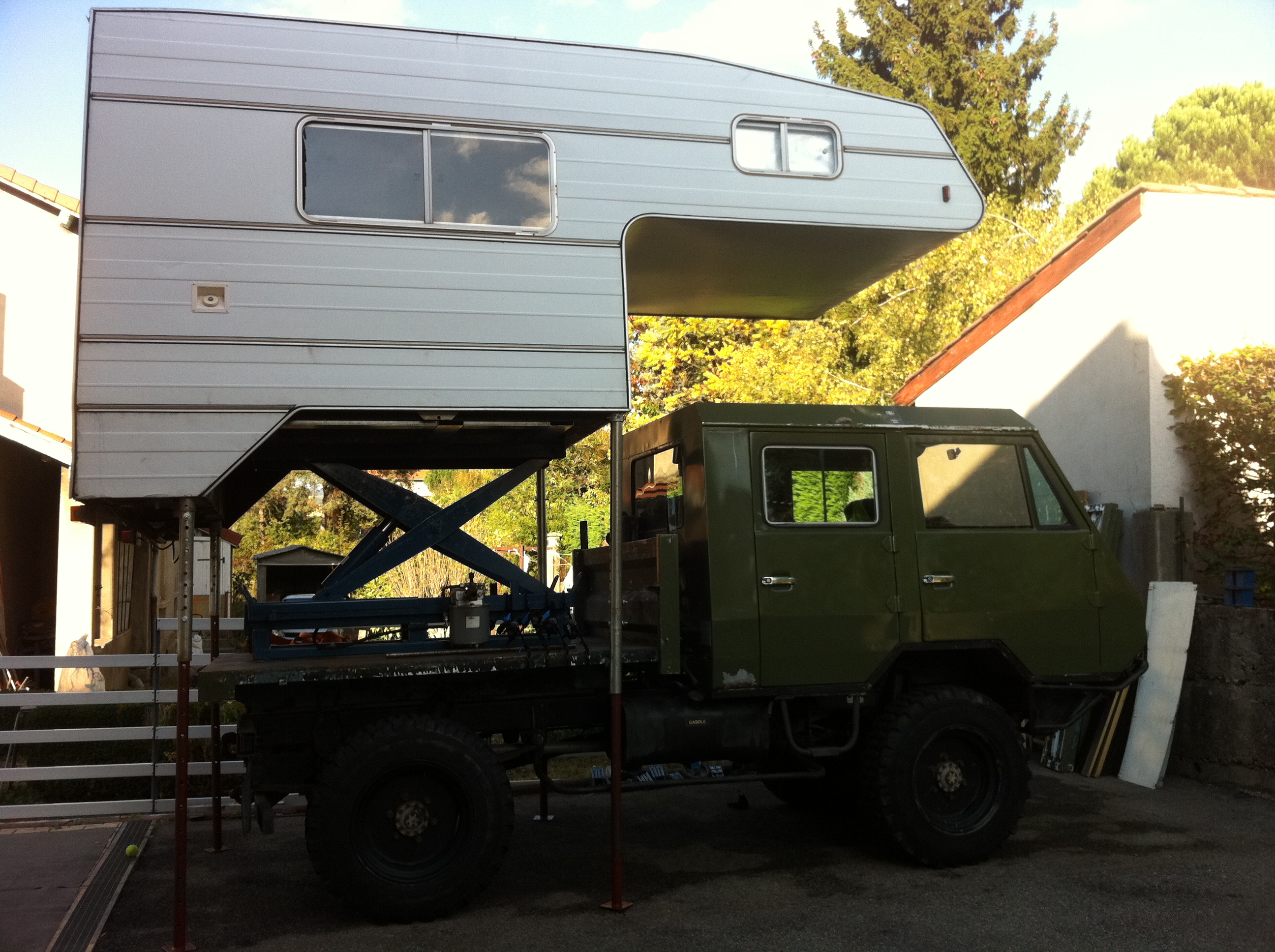 Le plateau est provisoire car il est un peu trop pourri pour faire l'affaire. Je ne sais pas par quoi je vais le changer, mais je partirai plutôt pour un plateau de TRM2000 (au moins quand tu veux enlever les ridelles tu n'as pas à sortir la clé de 13 pendant une demi journée).