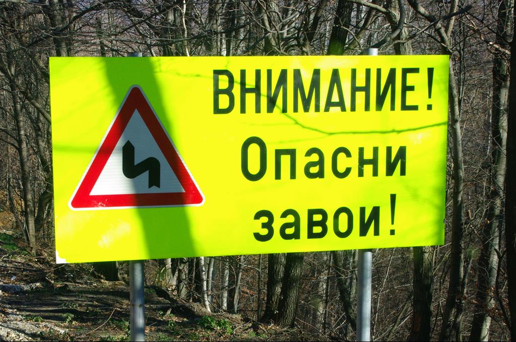 ce doit être du bulgare qui veut dire : Attention, virages dangereux!