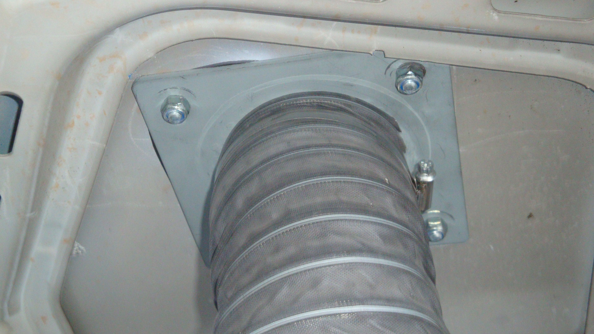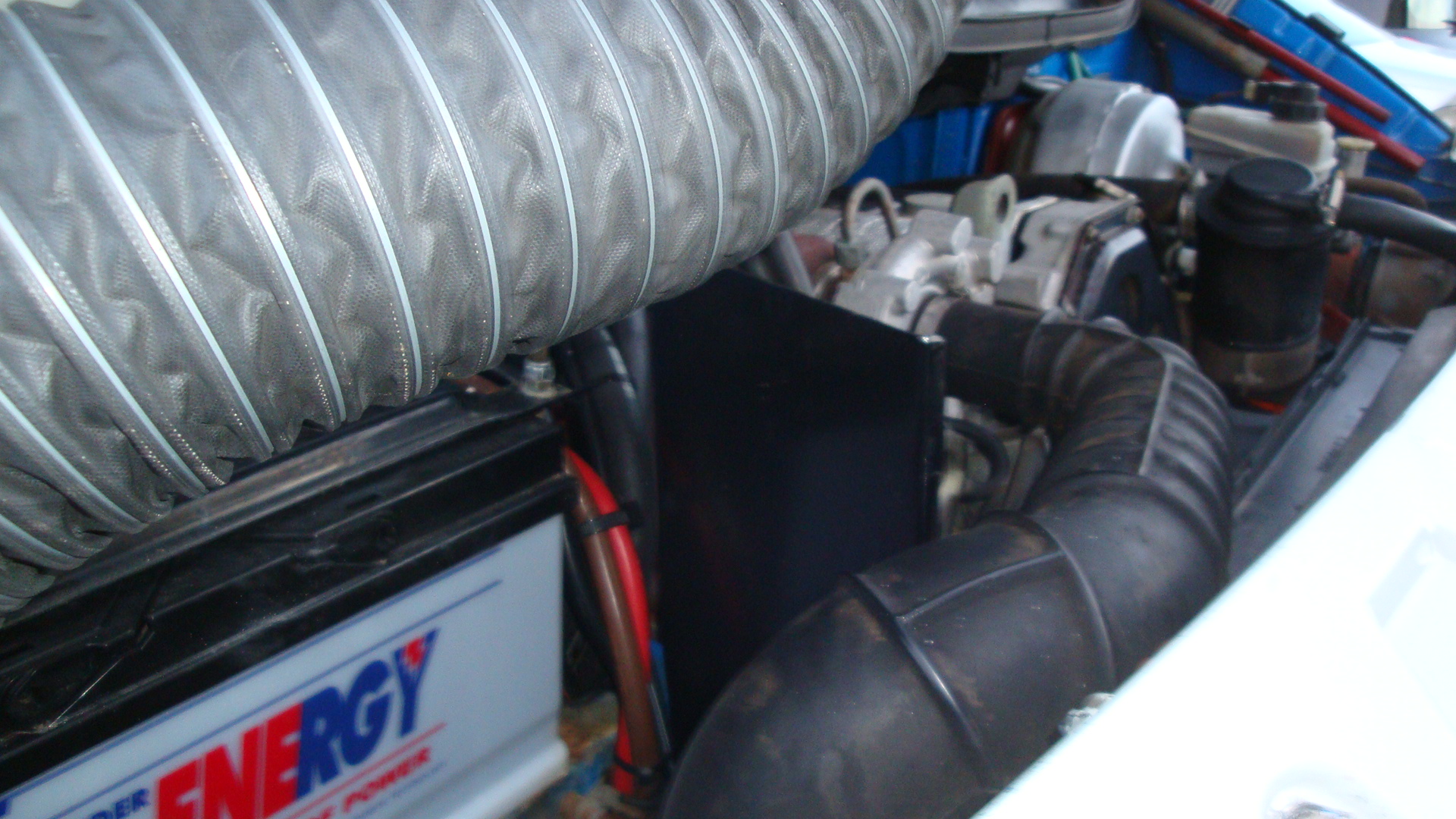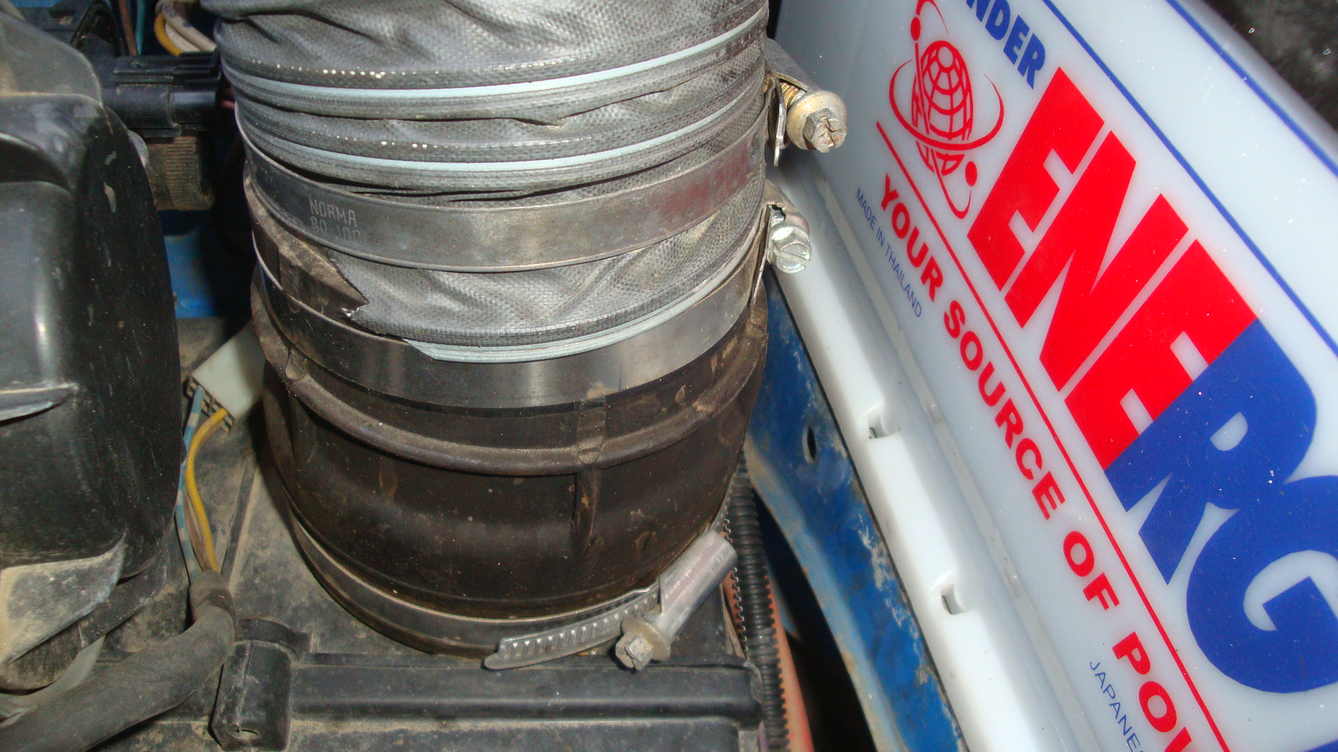 Fixation sur la boîte à air par un tube alu Ø 100mm qui relie la durit d'origine qui à été coupé et le flexible