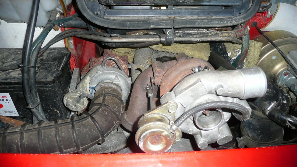 il n'a malheureusement pris des photos qu'après montage...donc ça ne dit pas grand chose...ici sur une photo prise suivant le même angle...on y voit le pied de la batterie a gauche et la commande de wastegate qui a une forme un peu différente de celle au dessus.