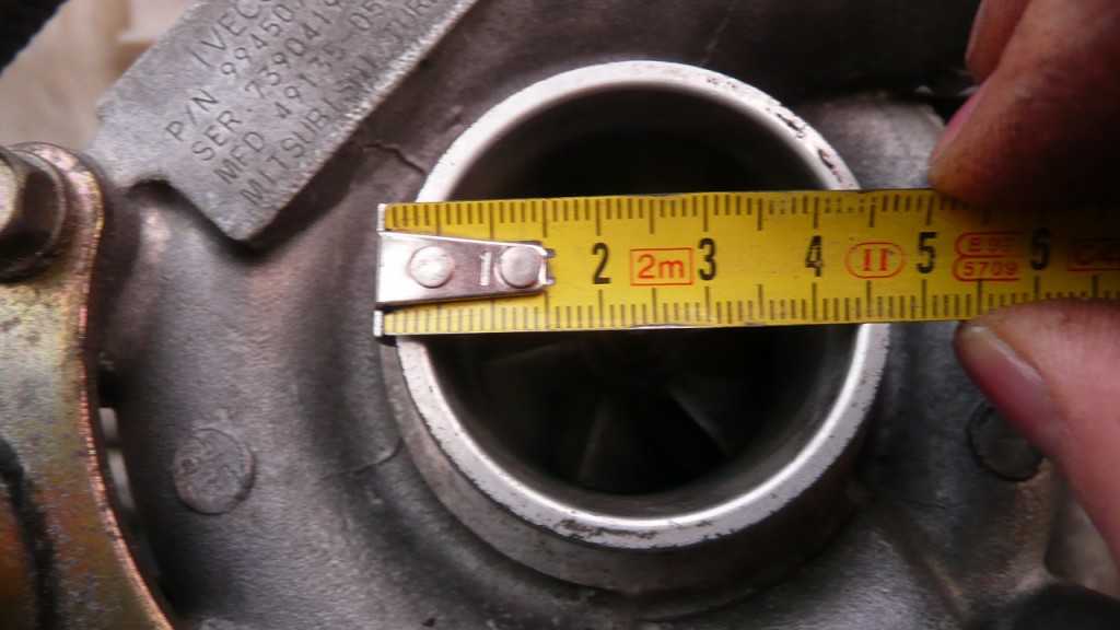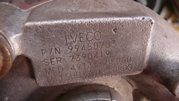 2) The turbo charger outlet is too narrow for the original Iveco silicon rubber pipe (the one connecting turbo to IC, flow toward IC), and its shape is not suited to bear the connection with a rubber pipe. Initially we thought to have a metal collar machined to the proper size to fit onto the turbo outlet but then the iveco garage had a spare turbo from a broken 35-12 engine at approx same mileage than mine, and they were keen to swap it with mine at no additional cost (this is because they also are good friends of mine, this might not happen to everybody :-D )