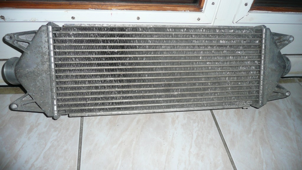 Pour commencer j'ai récupéré tout ce dont j'avais besoin à la casse. J'ai eu la chance de trouver toutes les pièces dont j'avais besoin, par exemple: intercooler, durites d'entrée et de sortie, et la nouvelle connectique pour le collecteur d'admission d'air (celui dont Bruno donne la référence dans son tutorial) tout en pièces d'origine, pour un total de 180€. L'ensemble est en très bon état, seul l'intercooler a nécessité un travail méticuleux pour redresser les ailettes de refroidissement qui avaient été tordues au démontage je suppose. Si j'avais acheté ces pièces neuves j'en aurais eu pour 617+198+198+90€ soit environ 1100€ plus la TVA...