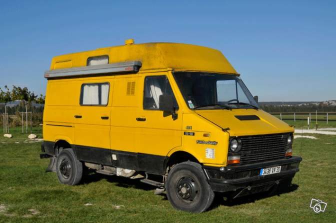 Iveco Turbo Daily, Fourgon, Diesel, Mai/1989, 277000 Km -10 vitesses- blocage différentiel-aménagé camping car TT- Isolé- couchage 2 dans largeur, rangement important-cuisine-WC broyeur- douche- eau chaude-220v - 12v,frigo,panneau solaire, 2 batteries, chauffage air pulsé, auvent, compresseur, transfo 12V,220V pour ordi ou photo, 2 réservoirs gas oil, eau 120 l, 5 pneus neufs 7,5x16, porte vélo, boule remorque, 2 plaques à sable, 2 crics, entretient régulier, CT OK, Véhicule parfaitement fiable pour grand raids ; vendu car je ne suis plus fiable suite accident !