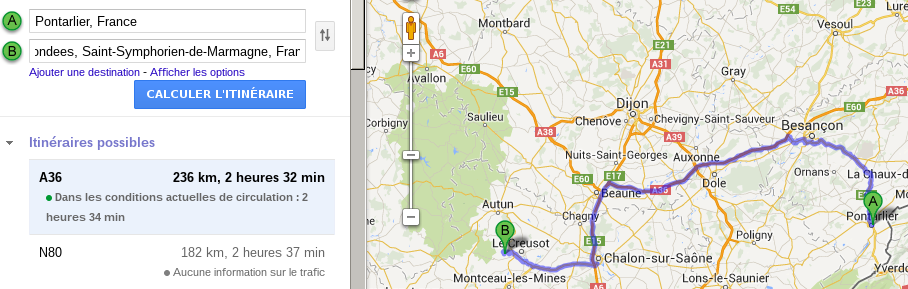 Petite préférence pour le trajet par le Jura, très très beaux paysages et route vraiment sympa. Ça changera de la nationale 57 pour Besançon. En plus quitte à rouler tranquillement autant prendre un circuit agréable...