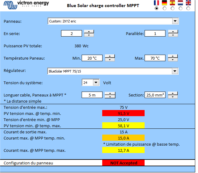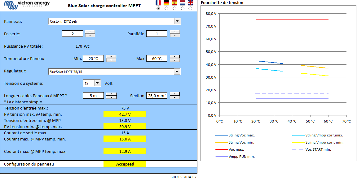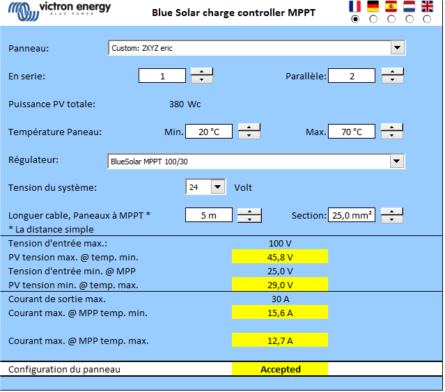 Voilà, à vous de faire joujou avec le simulateur ! En fonction de votre configuration 12 ou 24V et des caractéristiques de vos panneaux ... :wink: