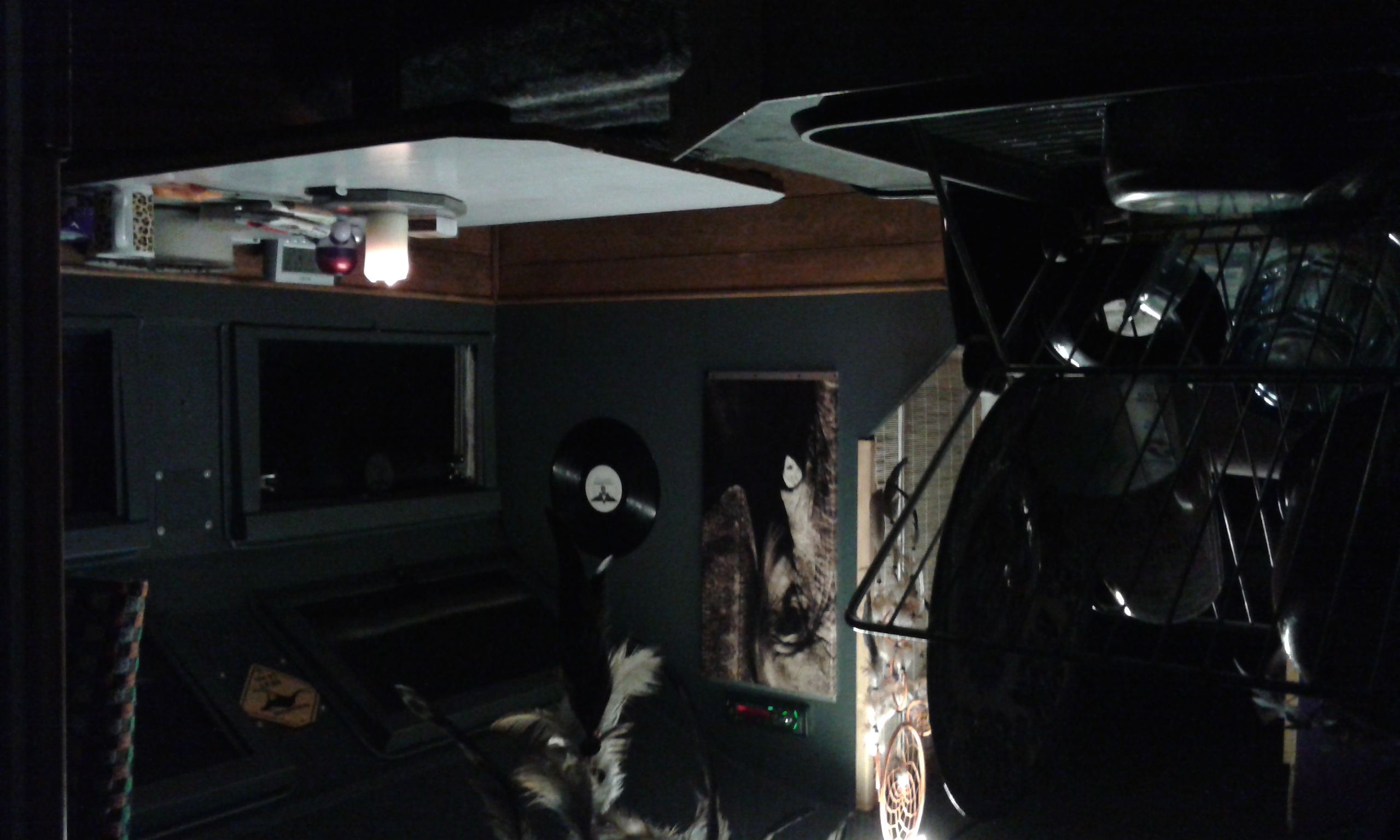 Dans le salon-cuisine, Toine y a installé deux bandeaux de 1 mètre en 12 volts, 1 mètre dans la chambre.