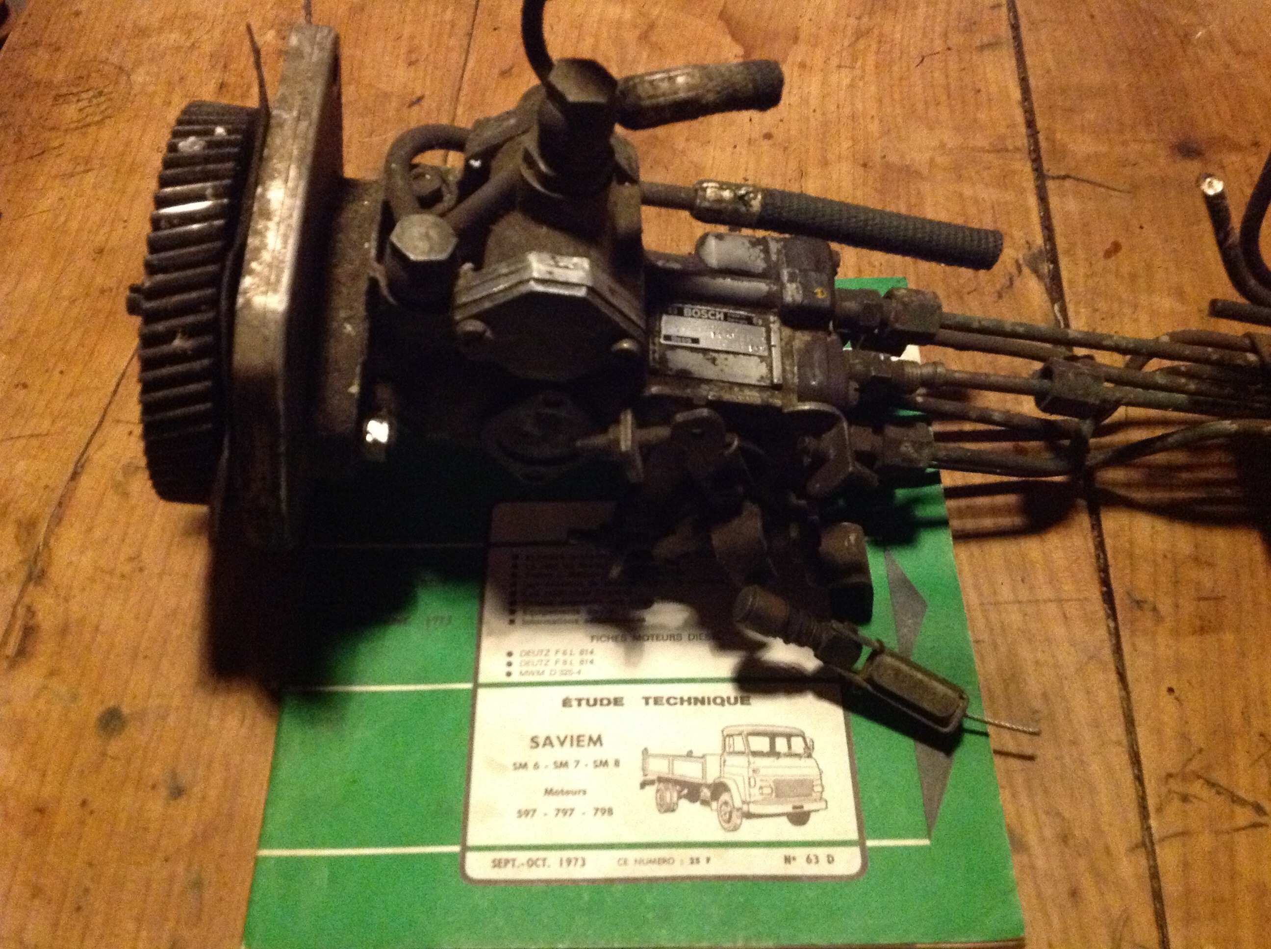 Pas de pièce de rechange évidemment, mais les gars du coin m'ont ré-usiné un axe en partant d'une autre pompe Bosch.