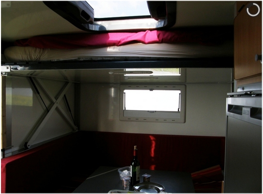 Sur les photos que Seb a mises (je suppose que c'est votre camion) je crois distinguer un dispositif de couchette relevable (?) Nous sommes curieux de savoir comment ça se manœuvre, c'est une option très intéressante pour agrandir l'espace sans avoir à faire son lit tous les jours.