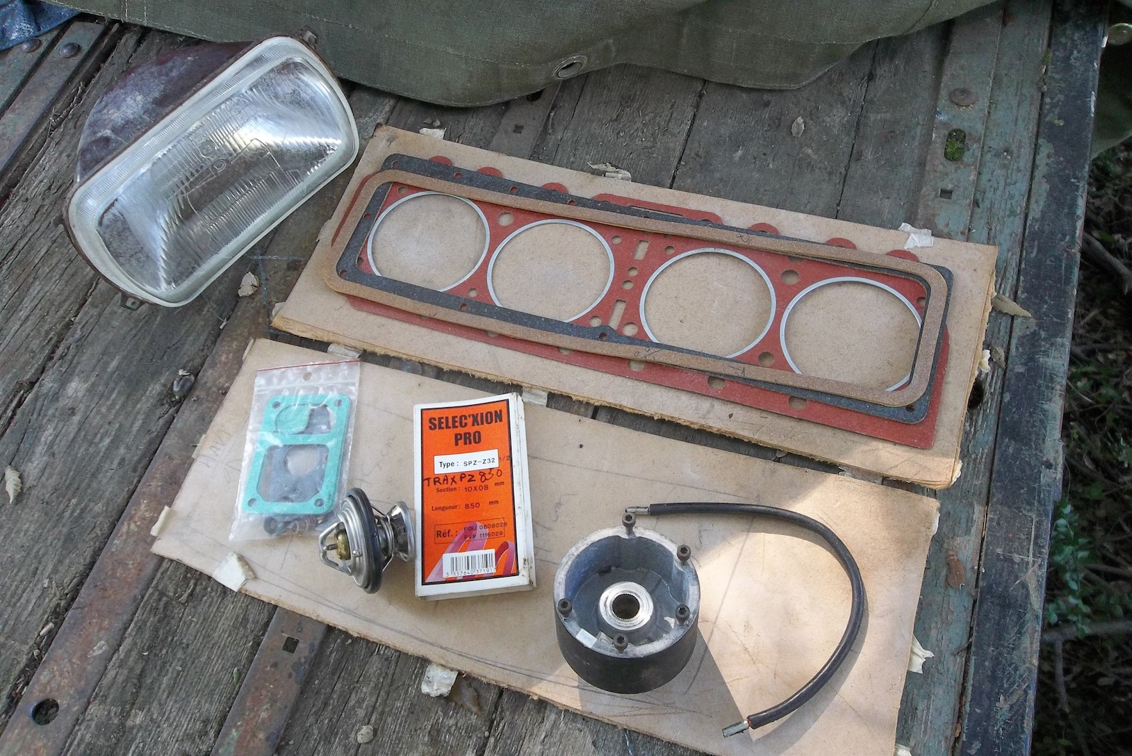 Pour l'instant j'ai rebranché toutes les durites qui étaient soit pendantes soit branchées au mauvais endroit :roll:, réparé la grosse durite d'admission et nettoyé le filtre, recâblé correctement le faisceau d'allumage, remis en état la pompe à essence et rajouté un filtre. Les fluides sont (bizarrement) propres, j'ai encore l'alternateur à remonter et le tendeur de courroie de pompe à eau à trouver, et on verra si monsieur veut bien tousser.