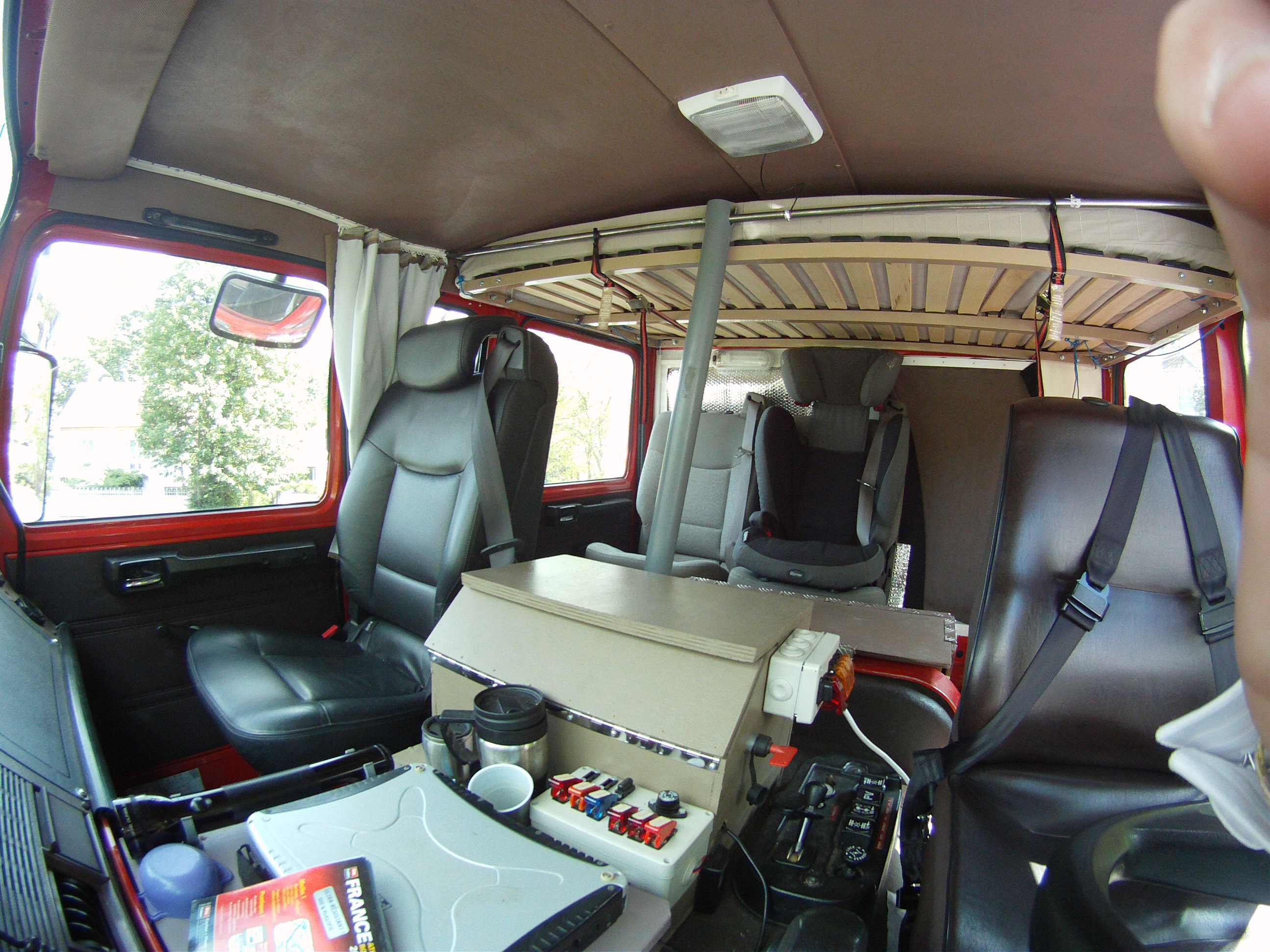 La boite de vitesse a été changée pour une boite longue, tout le moteur et l'ensemble de la chaine de propulsion a été vérifiée. La cellule est conçue pour permettre à 4 personnes (voire 6) de vivre confortablement en autarcie :