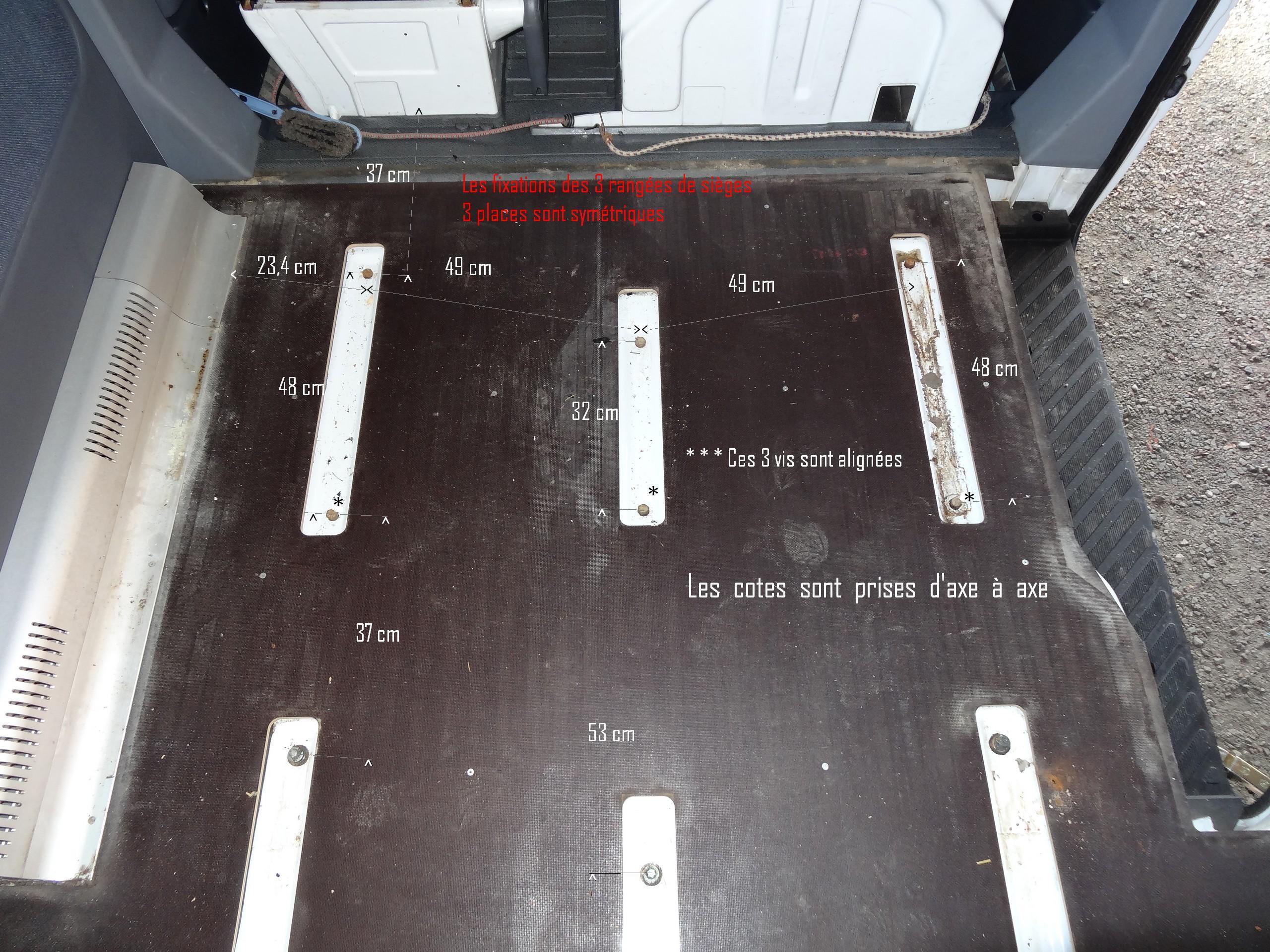 - Relevé des emplacements des fixations pour les sièges AR. On ne sait jamais...