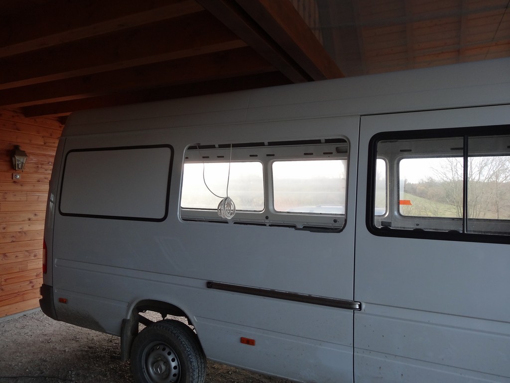 - Pose du Dibond pour remplacer les 4 grandes vitres arrières