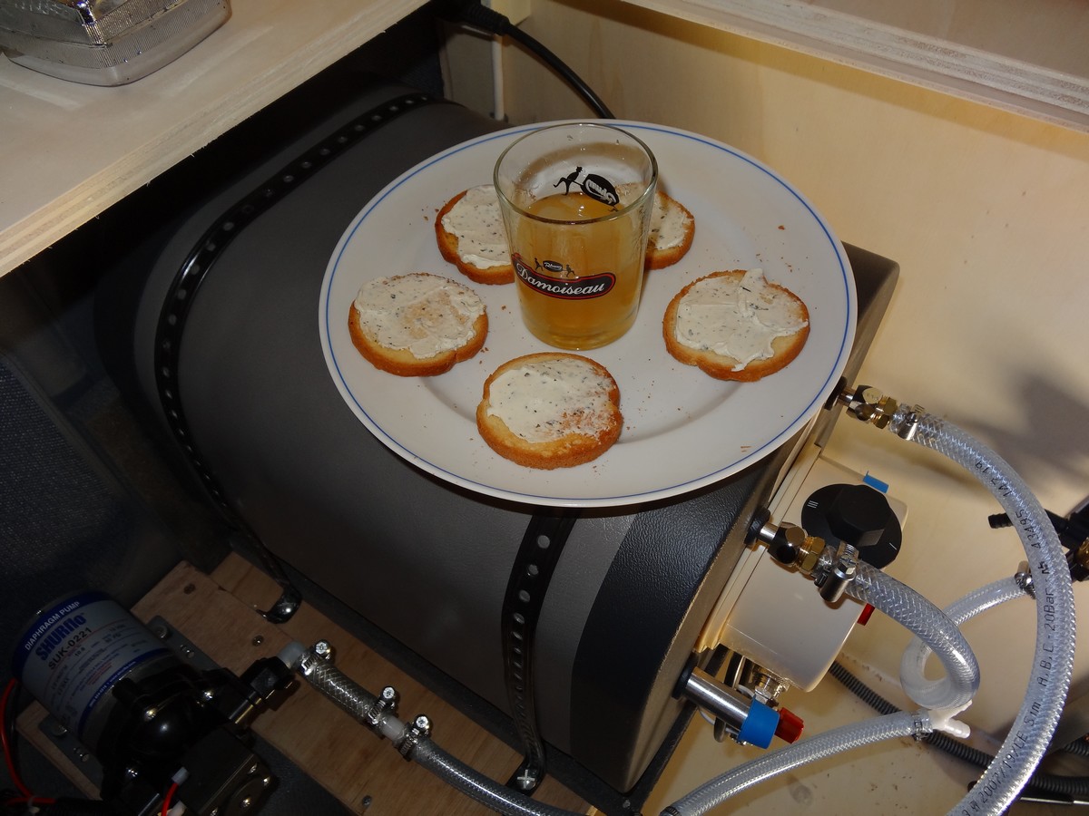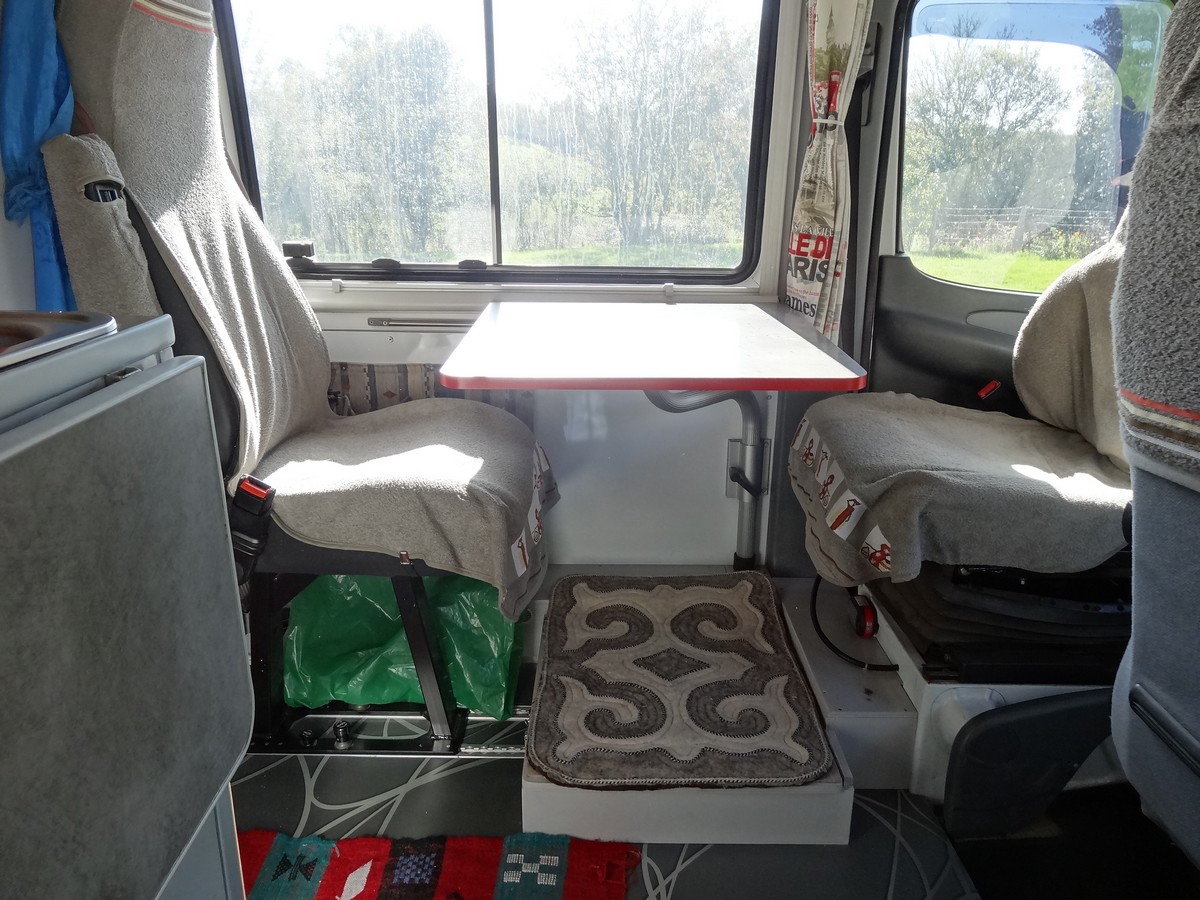 - La salle à manger. Sous les pieds : outillage en bas au fond : Eberspacher à air