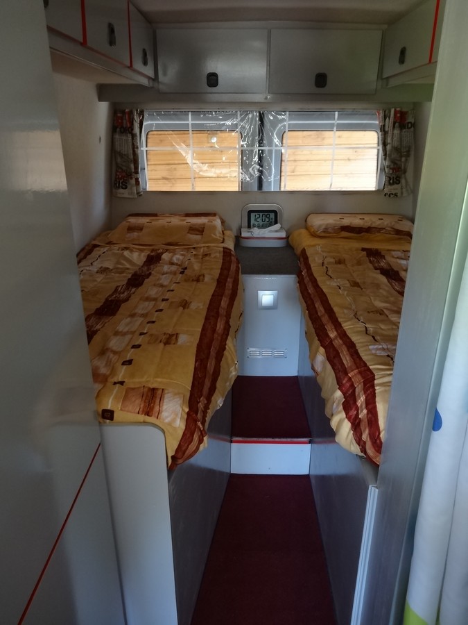 Avec un châssis long (empattement 4,02m soit 46cm de plus que les châssis moyens) on a l'avantage de pouvoir faire des lits dans le sens de la longueur, puisqu'on a 4,30m de longueur utile.