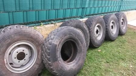 je vend 5Jantes cerclées 16-6-50H 15261S équipés de pneus Michelin XZL 255 100x16 (4 usés, 1 neuf)