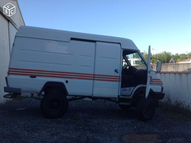 Base idéale pour camion raid ou pour surfeur,à aménager .acien camion atelier, dossier complet depuis achat ,contrôle technique ok,tout fonctionne ,carrosserie ok sauf un coup minime sur porte arriere ,pneu 20% d'usure,roue de secours jamais servie ,consommation 11 l à 90km/h,moteur sofim 125ch,ponts Renault avec blocage central,boite courte ,direction assistée ,attelage