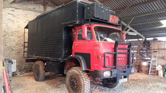 bonjour , voila après ma presentation je vous (re)presente le saviem donc certains d'entre vous connaissent, le saviem à Rulio actuellement 51000 km à l'achat il a pas roulé depuis. Il et en pleine modification , on a cassé l’aménagement pour reculer la caisse comme ça on pourra basculer la cabine on va faire un coffre sous la capucine pour y mettre la moto en attendant que la ferraille arrive on a agrandit la galerie et mis une rampe de feux mis un escalier coulissant et une nouvelle porte d'entrée pour la caisse je vous mets quelques photos ça parle plus qu'un long discours :wink: