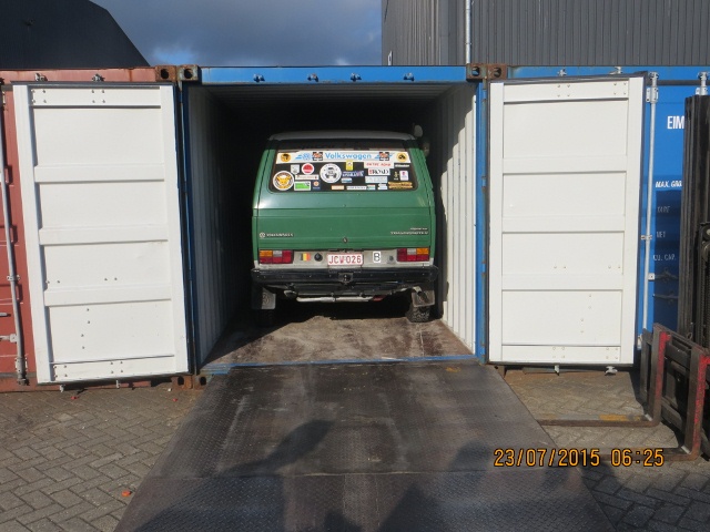 En Container 20" Dry Box intérieur L5.89 Largeur2.35 H2.38, Hauteur Porte entree: 2.31. 40": L12.05 Largeur2.34 Hauteur Porte: 2.37. Avec 2 Vehicules dedans deviens moins cher! Aux retour il etait dans une 40" seul(même prix). Rotterdam/Reykjavik aller/retour toute inclu: 1883.50 Euro. Formalites simples/bien organiser!... dans les Ports, dans 2 heures toutes arranger! Grande! difference comme a Durban/Buenos Aires.....! Puis le Vol: Icelandair a/r: