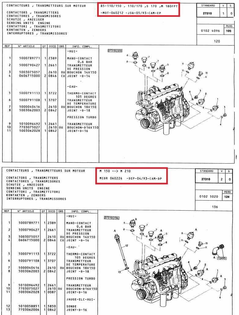 1993 => 1999 : MIDR 060226, 6.1L et aussi en 11T5 de PTAC avec des modèle remorquant avec un PTRA de 21T5 boite 6 et transfert Man G450 les modèles sont 4X4JP4 -JP5