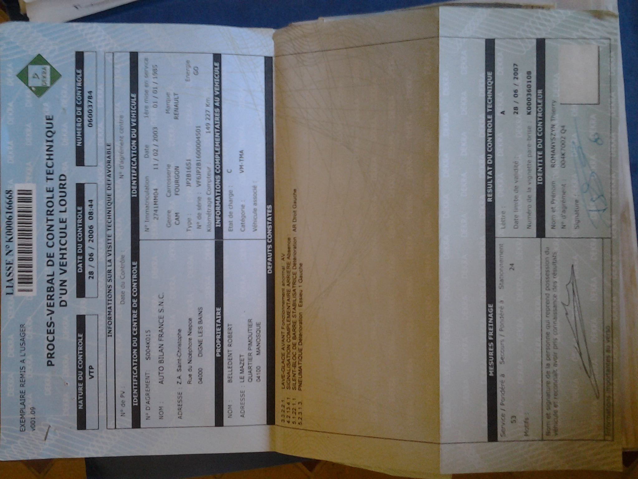 Heu, ton rapport de contrôle technique date de pratiquement 10 ans, donc il ne doit pu être dans le même état depuis le temps ( freinage, fuites diverses, ... ). :roll: