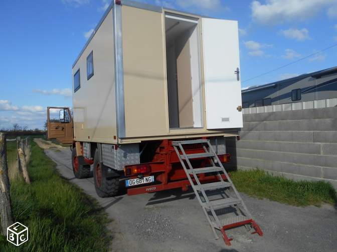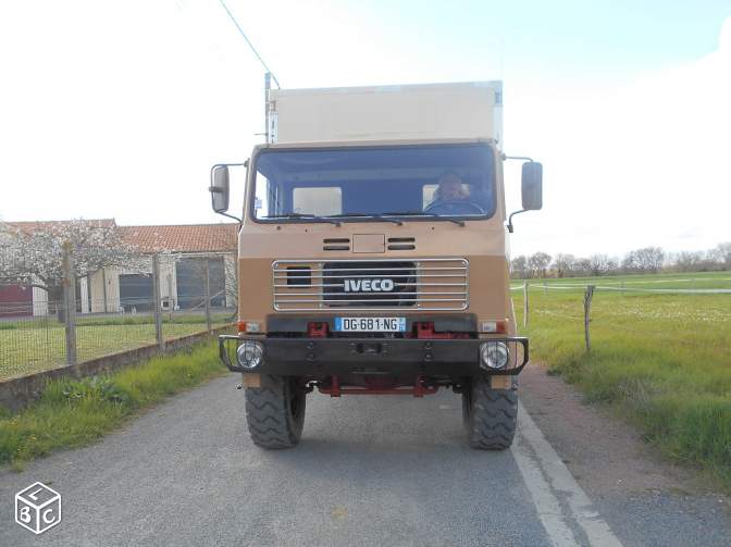 4x4 Iveco 80-17 Turbo, année 1988, 153700Km d'origine, robuste pas d'électronique, conso 20/22L, carte grise VASP auto caravane, équipé camping très bien isolé caisse frigo, sol et plafond 13cm, côtés 11cm, avec matériel neuf, frigo congélateur, plaque 2 feux, évier, WC à cassette, lavabo, douche séparée 80x80, chauffage Truma 4000 avec production d'eau chaude, lumière Led, nombreux rangement, eau propre 130L, eau usée 130L, 1 panneau solaire 205W, 2 batteries cellule neuves 120 ampères, 3 coffres alu 2 pour rangement et 1 pour batteries, coffre 2 bouteilles de gaz, batteries moteur neuves, pneus Bon état, peinture récente, CT Ok refait lors de la vente, prêt à partir