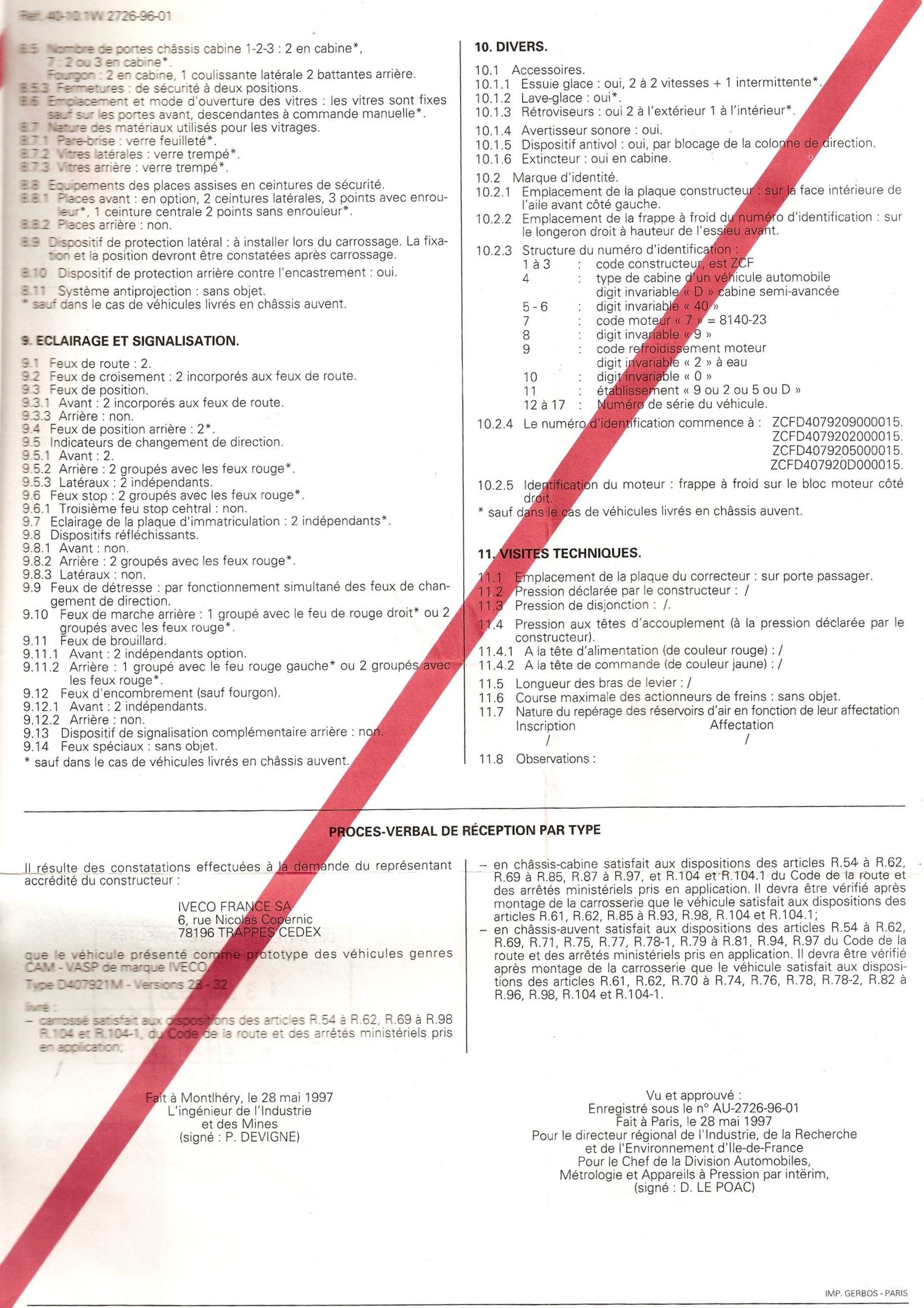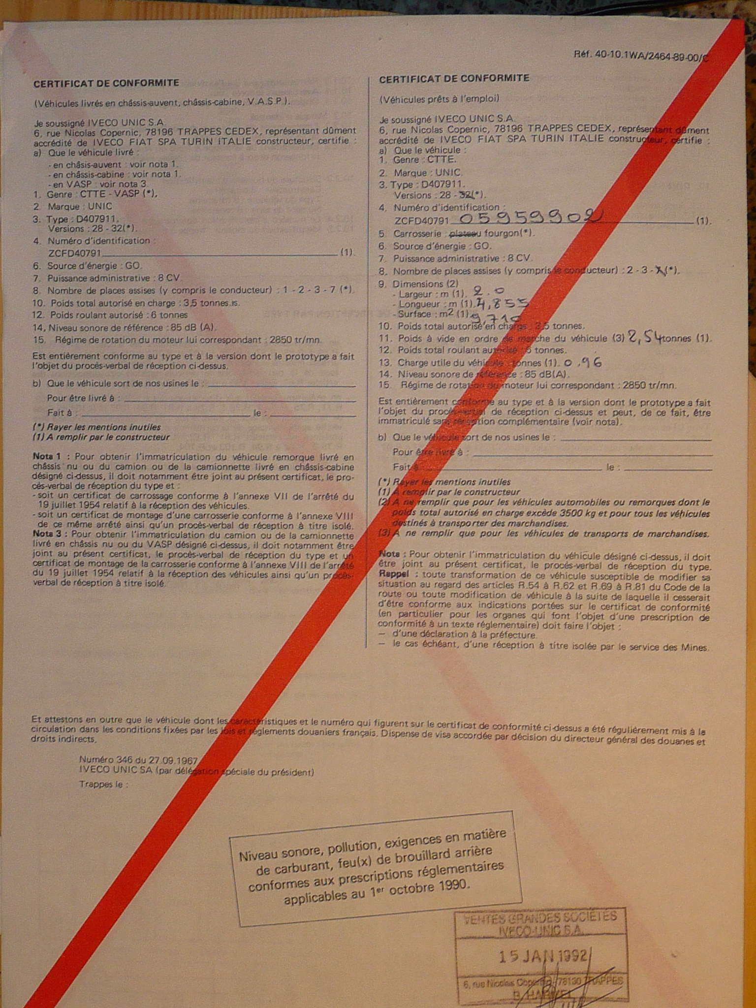 Je viens de recevoir de la part d'IVECO FRANCE mon autorisation de transformation et mes nouveaux barré rouge pour mon ivéco fourgon de 1995 alors si cela peux servir.