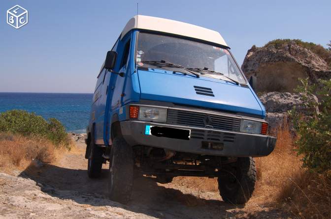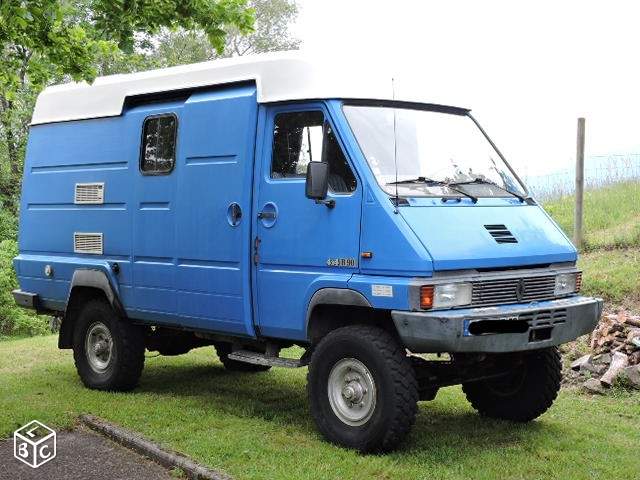 Vends Renault B90 4x4 Diesel. Pont Hurt.Petites et grandes vitesses.Blocage de différentiels avant et arrière.Aménagé pour 2 personnes. Carte grise 3 places. Réservoir d'eau de 200 litres. Contrôle technique OK. Se conduit avec un permis B.