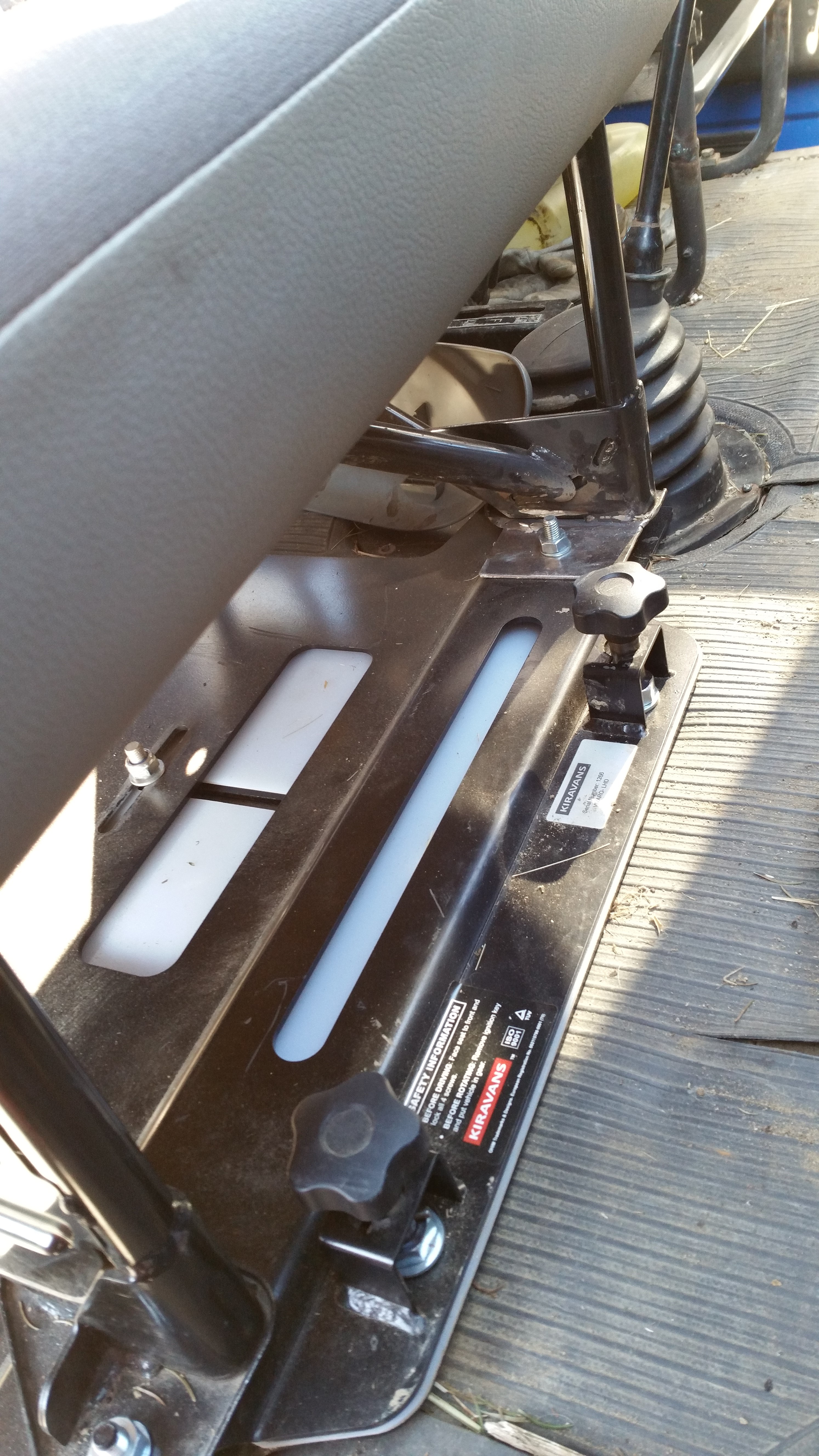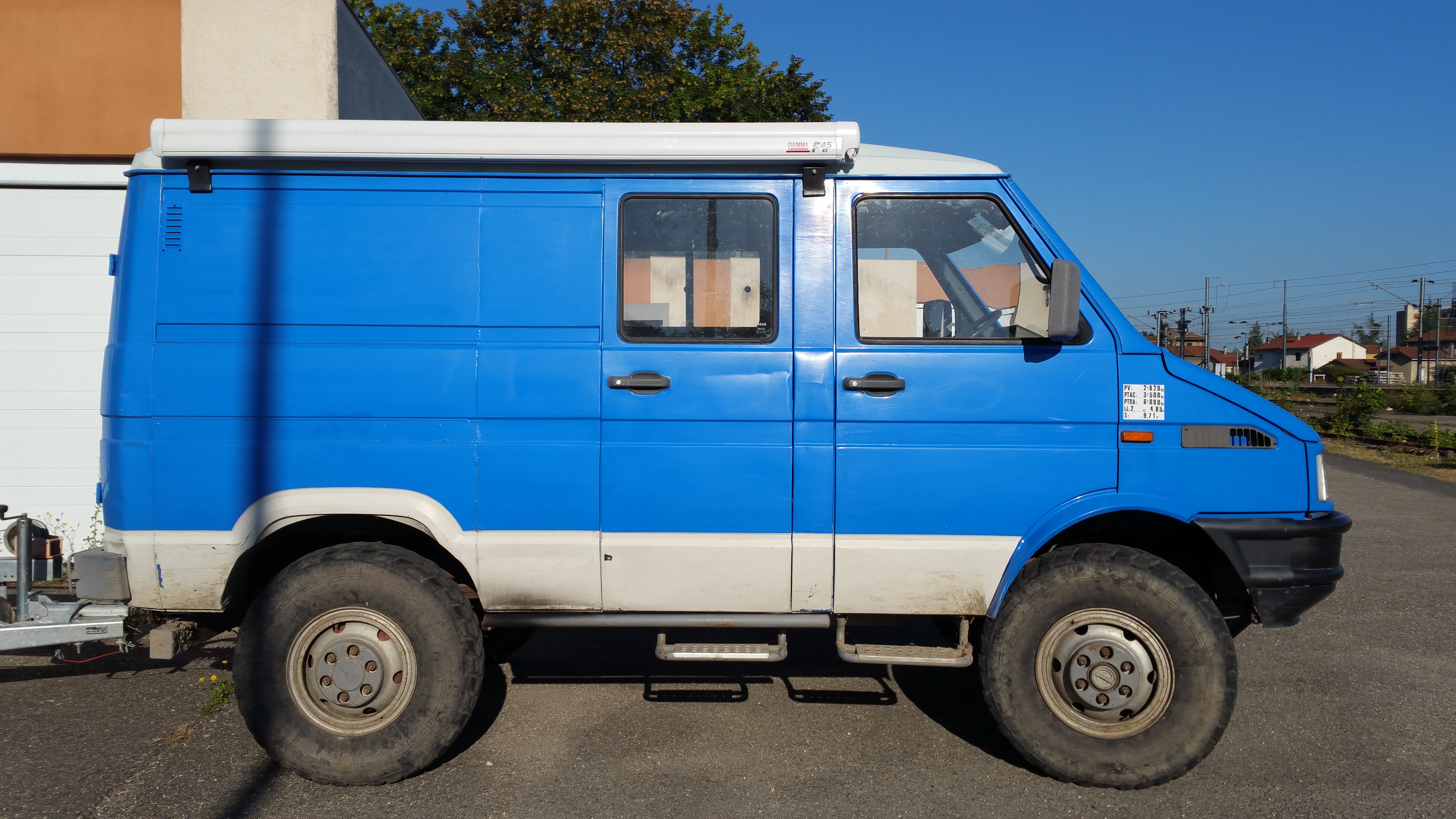 le cam ne vous sera pas inconnu, c'était celui de gil (06)... plutôt typé rando, on cherche a le rendre "grand voyageur". Mais pas évident de caser 5 pers. dans un châssis court non rehaussé.ça fume pour l'aménagement. mais ce coté compact fait aussi sa force... et on a déjà quelques pistes (même si on ne prétend pas réinventer l'eau tiède!). par exemple on vient de basculer une place arrière sur l'avant. Avec une banquette 2 places arrières au lieu de 3, on gagne un peu en "espace de vie"; et on a mis une banquette 2 places avant de trafic avec embase tournante pour le coin repas. reste a faire la même chose avec le fauteuil conducteur.
