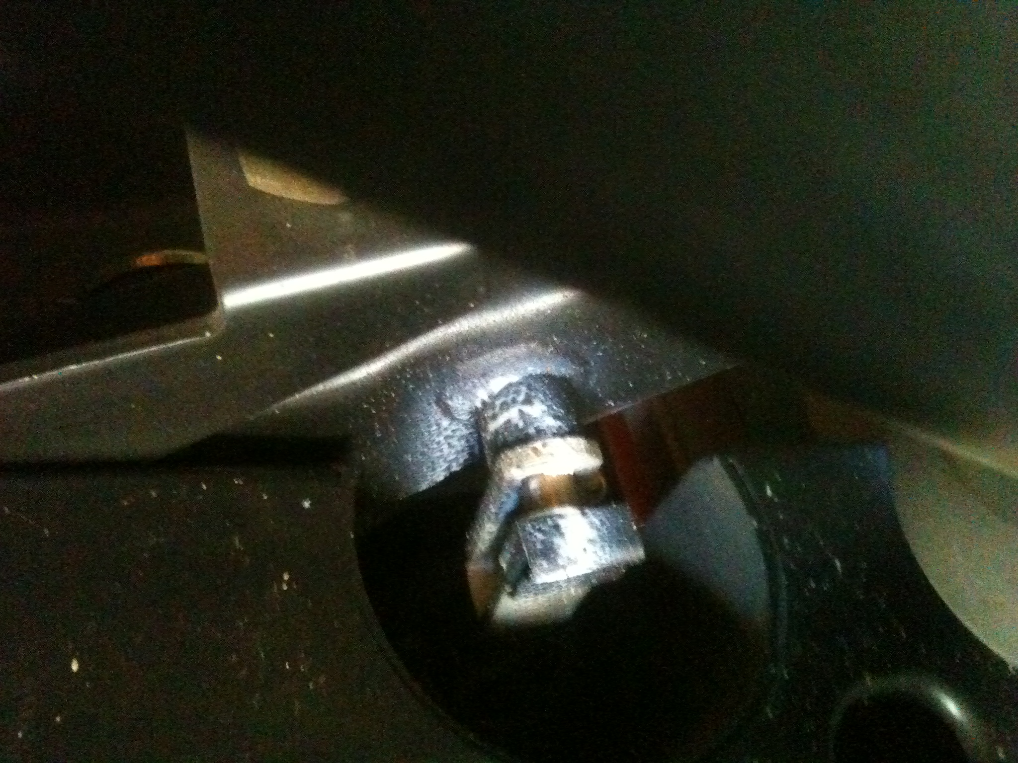 Je prend donc le temps de chercher un peu et m’aperçois finalement que le répartiteur de freinage (un limiteur de l'arrière en fait) est impossible à régler convenablement dans sa configuration d'origine... Je le désolidarise donc du pont arrière pour le transformer en répartiteur réglable en fixant l'extrémité de la visse au châssis plutôt qu'au pont.