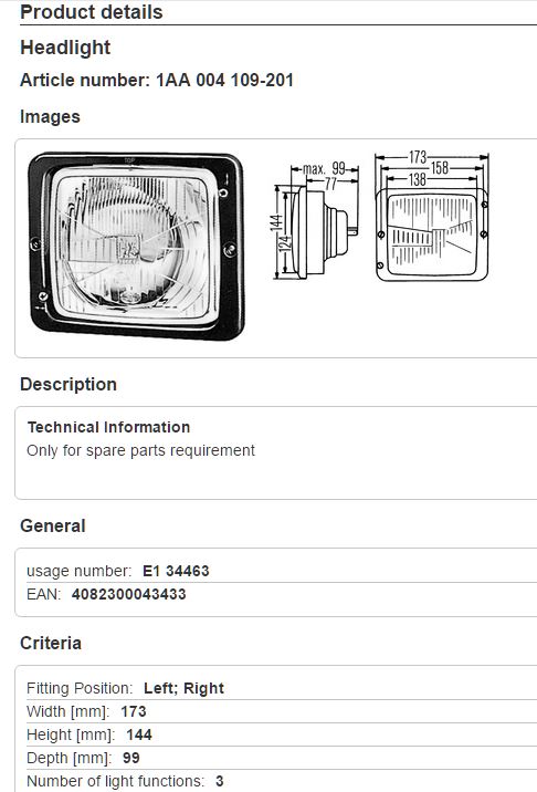 - Phare pour le Mercedes MB-Trac (1985-1991)