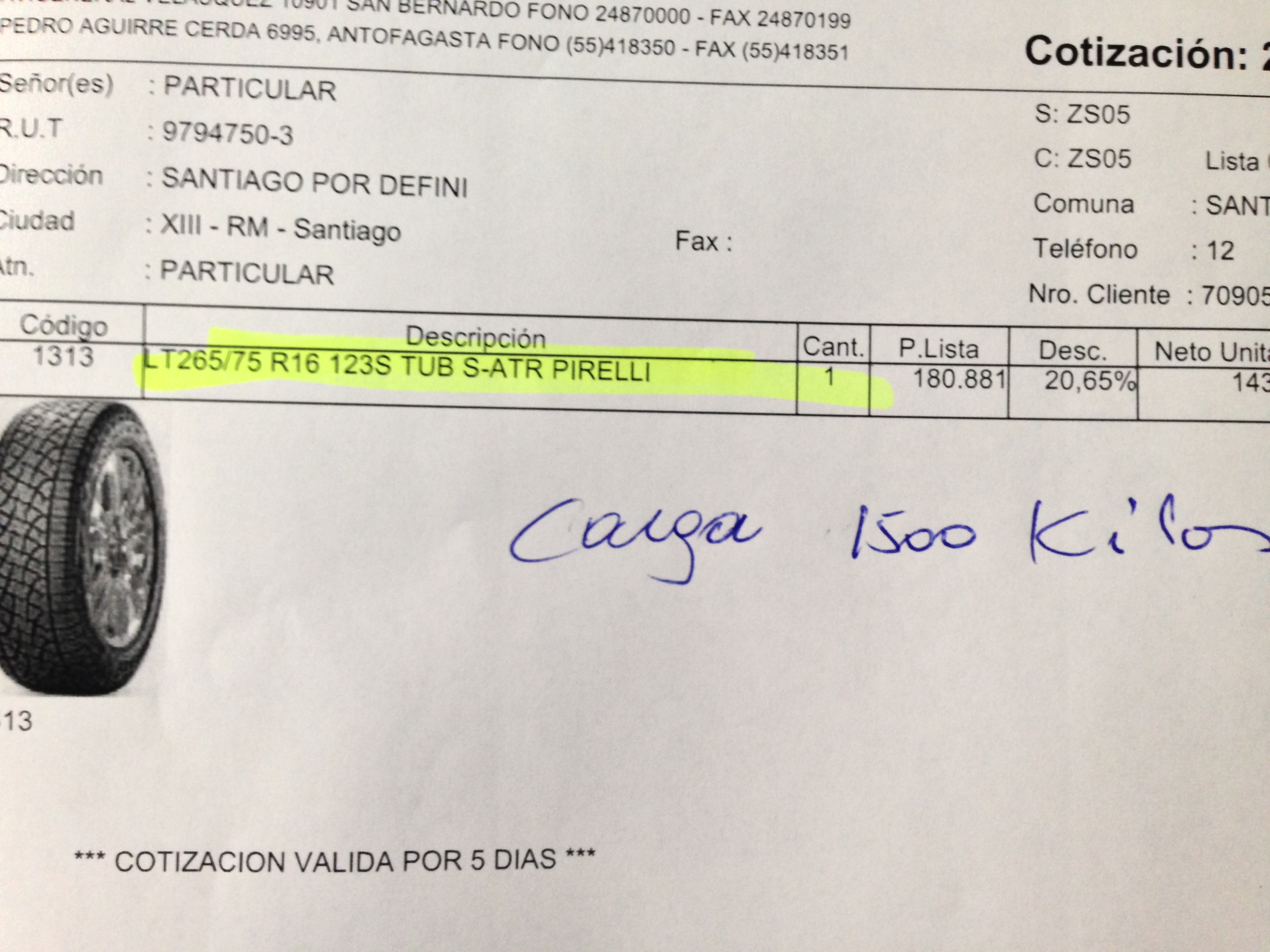 Pour les 265/75R16 ils sont à 2452, oublis à mon avis.