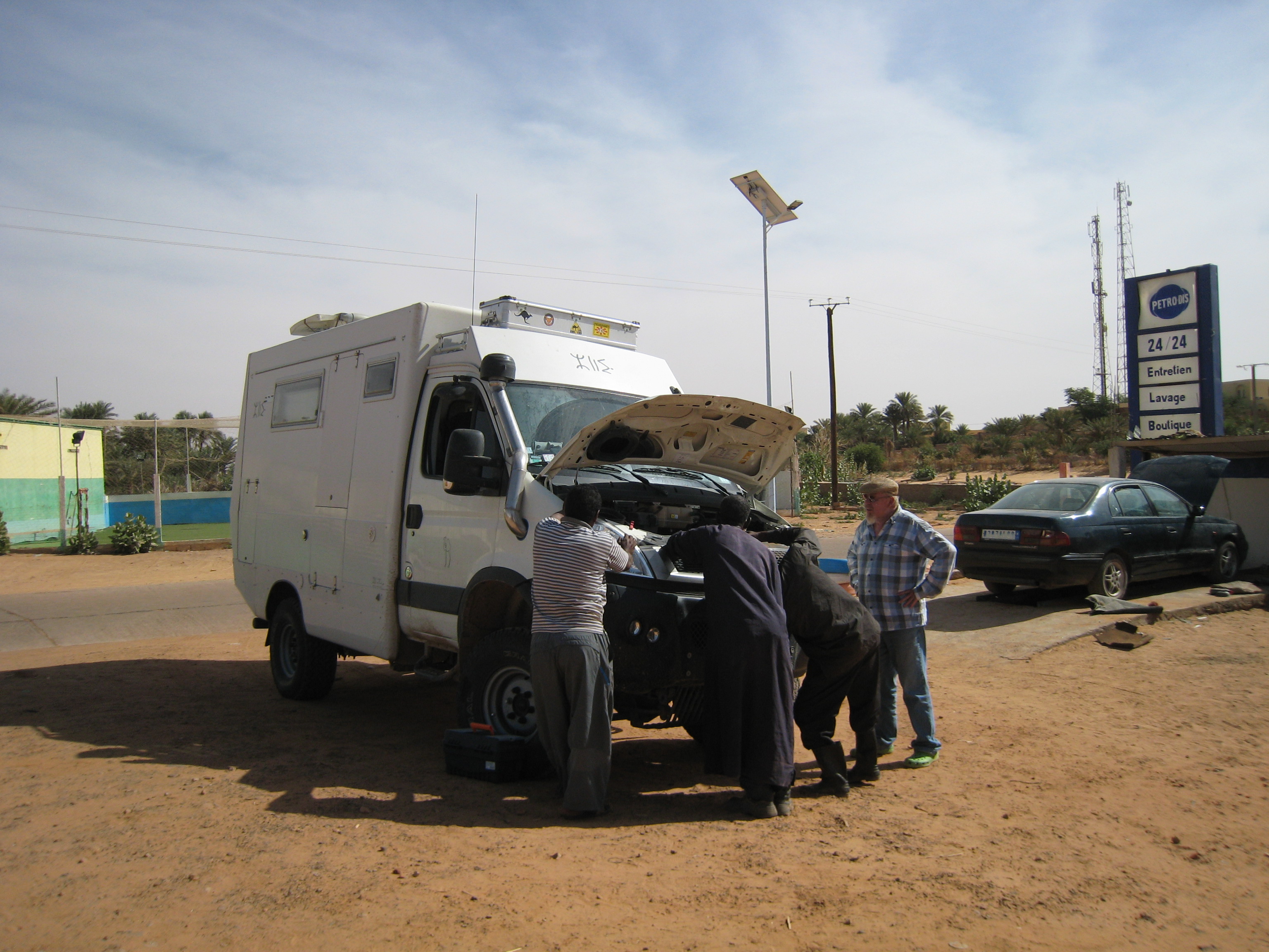 Réparation de fortune à Tidjika plus de calandre, une corde à chameau fera l'affaire