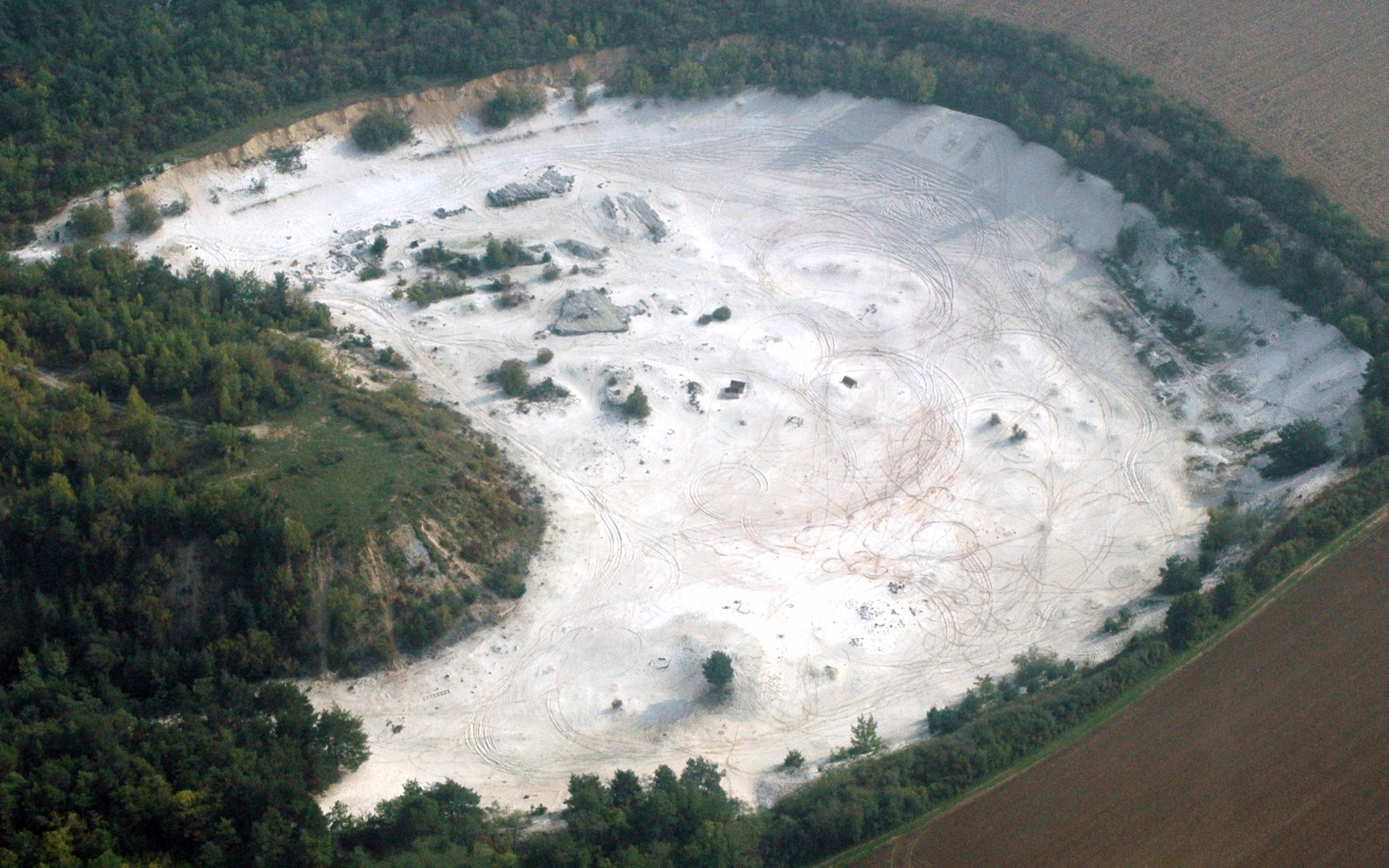 Voilà une vu aérienne de la carrière, elle fait une trentaine d'hectares et le paysage est vraiment lunaire quand le soleil donne!