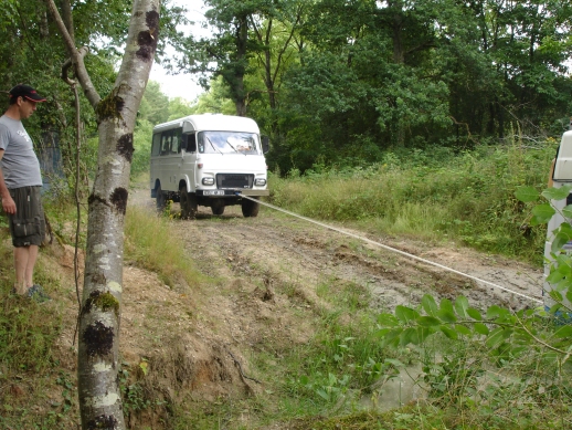 C'est vraiment déconcertant de facilité, il faut juste prévoir de la place derrière pour reculer et ne pas avoir peur d'accélérer un peu avec le "tracteur", on ne sent pas d'à-coup mais la bête sort du trou...