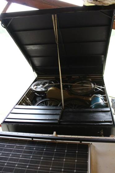 · 1 grand coffre de toit à clef avec échelle télescopique dans la cabine