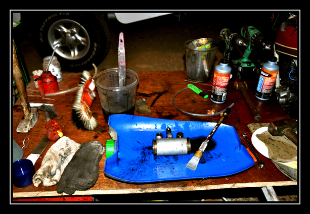 Procéder au déglaçage en effectuent des aller et venu dans le sens de la longueur, avec une rotation avec un papier abrasif de carrosserie. Pas trop épais le papier au risque de vous retrouver hors cote !! Pour ma par, j'ai pris xu G320 pour casser la rouille, puis du G 500 et 800 pour repolir l’intérieur de la pièces.