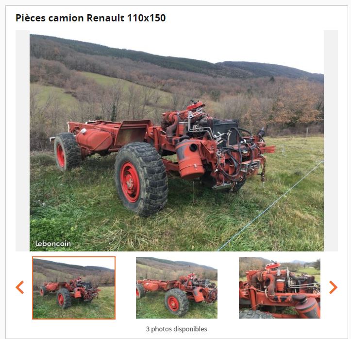 Vends toutes pièces d,un camion Renault 110x150 4x4 année 1987 suite à la récupération de la cabine :