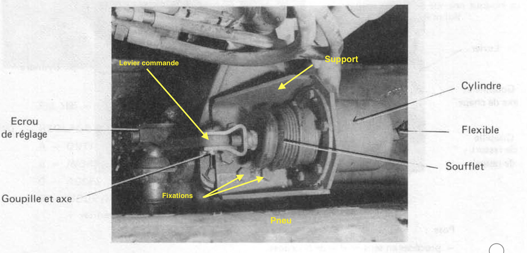 Il faut donc le déplacer vers l'intérieur de 4 à 5 cm et le levier de commande se trouve alors à côté de la patte de fixation, nous avons mis une fixation plus longue (axe) avec une cale en laissant un peu de jeu pour ne pas bloquer....