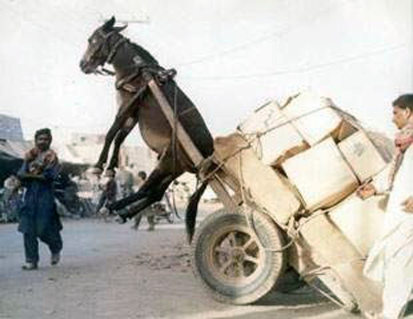 conclusion ; nous avons intérêt à troquer nos véhicules contre des charrette et des mulets pour les tirer ! fouet
