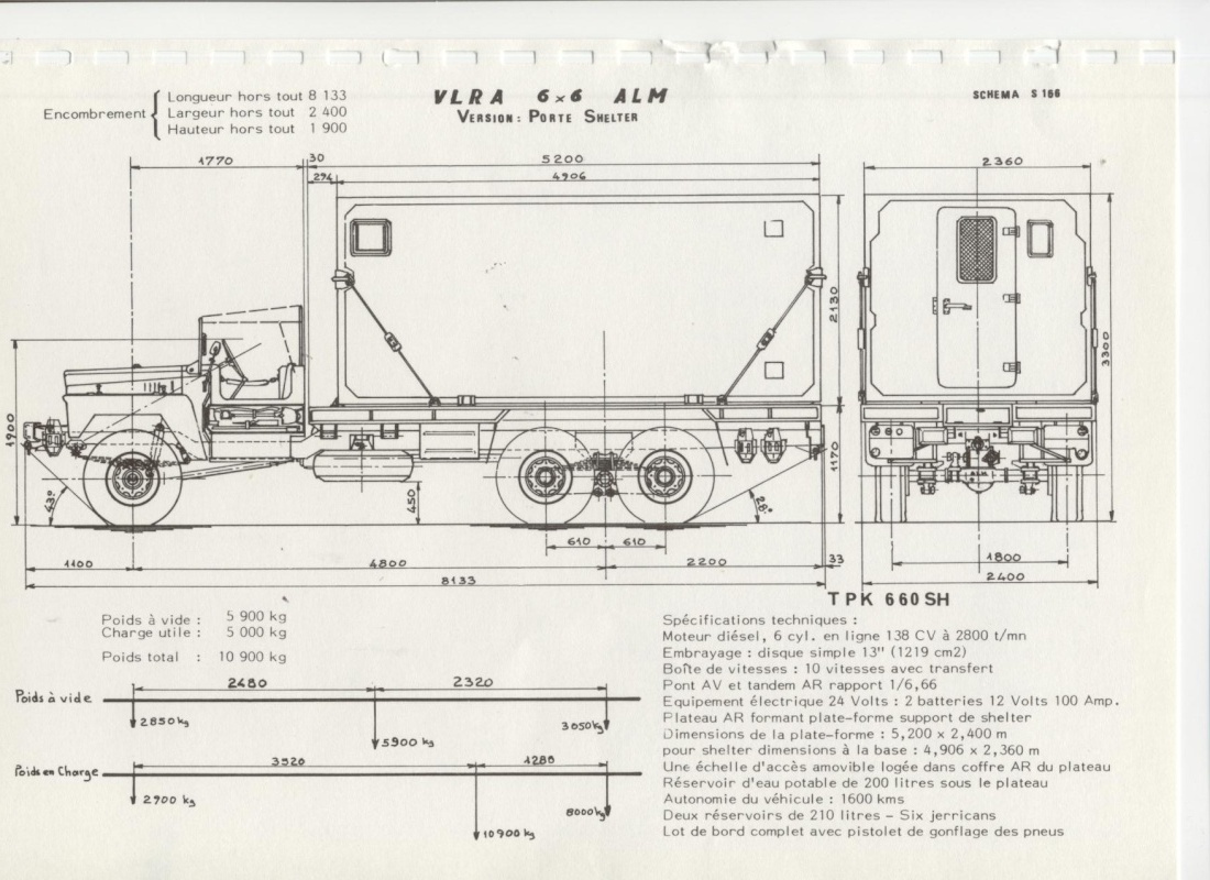 Voilà la cabine torpédo bâchée, avec un shelter arrimé sur son plateau : Mais là, il faut une grue pour le retirer. Celui que j'ai réussi à avoir (à Taverny) a des "jambes" avec des crémaillères. On peut donc le retirer du plateau tout seul ... avec de l'huile de coude !