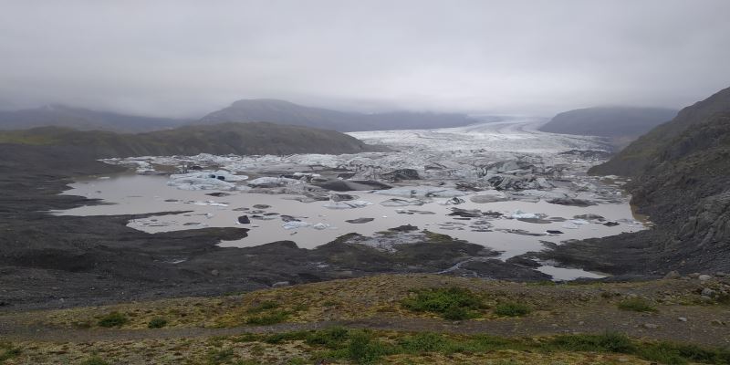 Avant de se poser pour la nuit, nous faisons un petit stop à la langue glacière de Svínafellsjökull, que je trouve personnellement plus joli que celle de Skaftafellsjökull
