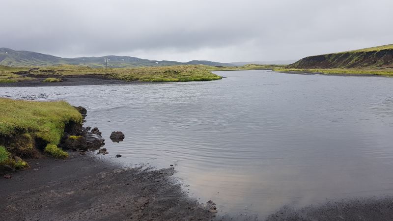 Avant de prendre la F233, nous faisons un petit crochet vers Hólmsá pour tenter une petite ballade Rauðibotn. Mais en arrivant sur place, le temps peu engageant nous incite à renoncer à cette petite marche d’environ 2h00. Nous reprenons la piste direction la F233, la pose du midi se fera sur le bord du lac et du refuge de Álftavötn. Un véritable petit coin de Paradis malgré le temps plutôt couvert et parfois pluvieux. Jusqu’à ce point la piste est toujours aussi roulante, avec aucune difficulté.