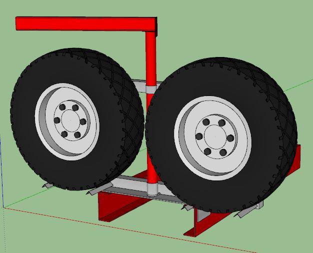 Ensuite sur le porte roue de secours : j'ai l'intention d'instatller à l'arrière du camion un porte roue avec potence pour 2 roues de secours.