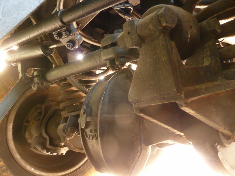 aux dernières nouvelles..le pont arrière est en place mais à l'avant, du fait d'une voie plus large les appuis de ressorts de suspensions sont décallés de 5cm de chaque cotés
