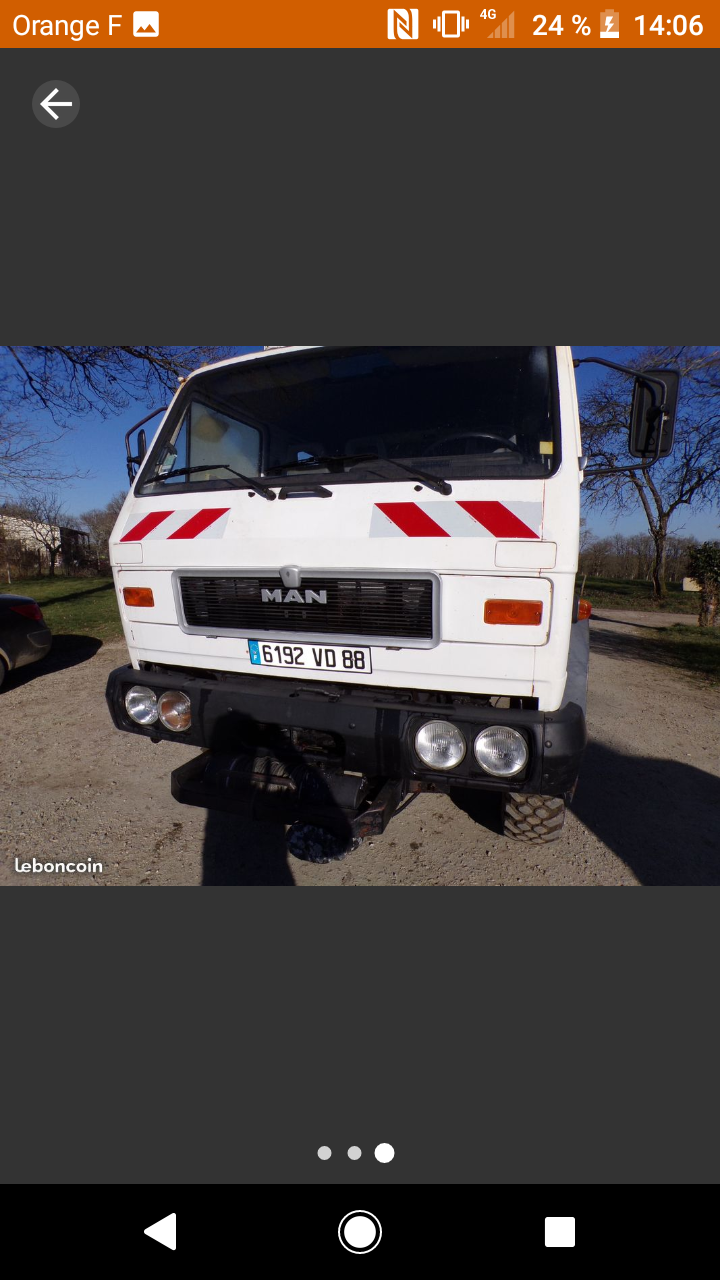 Nous avons franchi le pas avec l' achat d'un petit poids lourd 4x4 man 8.150 , double cabine immatriculation française, oui oui française.
